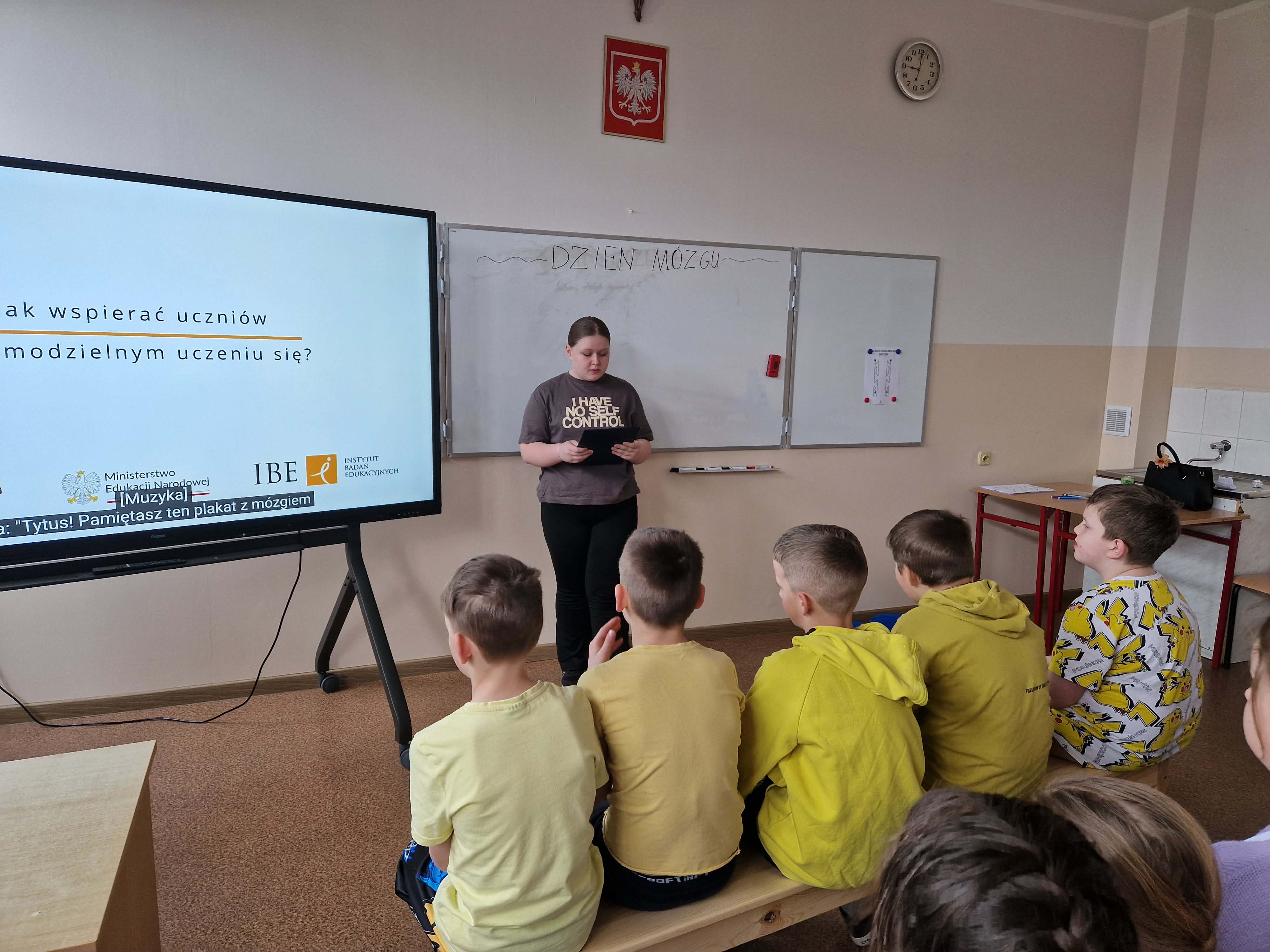 W naszej szkole odbyły się wyjątkowe obchody Dni Mózgu, które trwały przez cały tydzień i dostarczyły uczniom wielu ciekawych wyzwań oraz okazji do rozwijania swoich umiejętności. Tydzień rozpoczął się od „Planszówkowego wtorku”, podczas którego uczniowie mieli okazję ćwiczyć logiczne myślenie, strategię i współpracę poprzez różnorodne gry planszowe. Było to nie tylko świetne ćwiczenie dla umysłu, ale także doskonała forma integracji. Środa upłynęła pod hasłem „Aktywna środa”. Podczas przerw uczniowie uczestniczyli w różnych formach ruchu i zabawach ruchowych, dbając o dobrą kondycję i dotlenienie mózgu. Była to świetna okazja, aby połączyć aktywność fizyczną z troską o zdrowie i dobre samopoczucie. W czwartek wielu uczniów wzięło udział w Międzynarodowym Konkursie Matematycznym „Kangur”, sprawdzając swoje umiejętności logicznego myślenia i rozwiązywania problemów. Z okazji Dnia Mózgu ogłoszony został również konkurs plastyczny „Jak dbam o swój mózg?”, który cieszył się dużym zainteresowaniem wśród uczniów. Dodatkowo przygotowana została tematyczna gazetka szkolna, a przez cały tydzień na wirtualnej gazetce w holu pojawiały się ciekawostki dotyczące funkcjonowania mózgu, które wzbogacały wiedzę uczniów i zachęcały do dalszego odkrywania tajników ludzkiego umysłu. Finał obchodów przypadł na piątek, 20 marca. Tego dnia uczniowie oglądali filmy edukacyjne o mózgu oraz brali udział w różnorodnych aktywnościach – rozwiązywali zadania, łamigłówki, krzyżówki, labirynty i inne zagadki rozwijające myślenie. Był to dzień pełen wyzwań, ale także dobrej zabawy. Dni Mózgu były doskonałą okazją do pokazania, jak ważne jest dbanie o rozwój umysłowy oraz jak wiele radości może przynieść nauka poprzez zabawę.