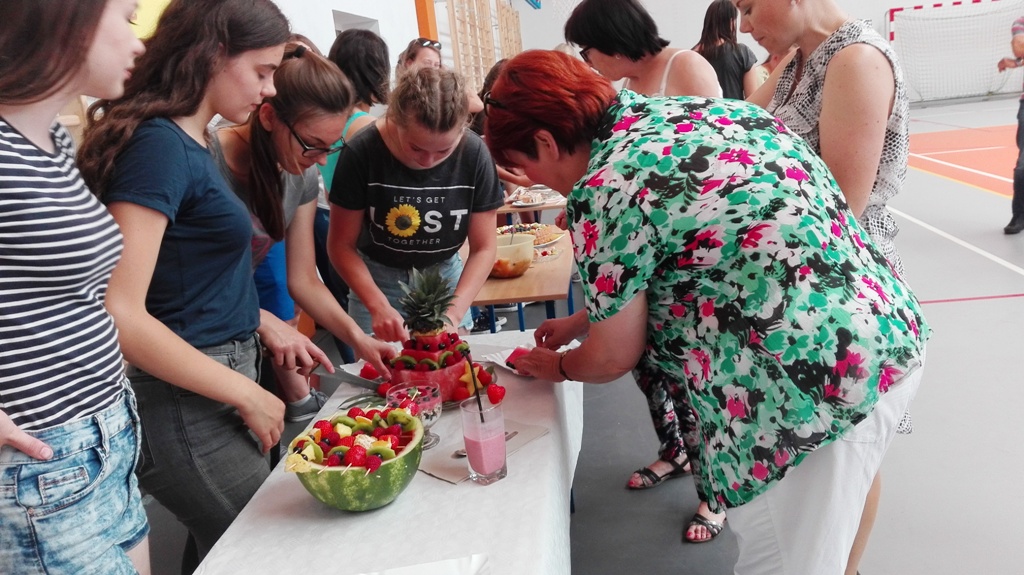 Dnia 20 czerwca 2017r. w ramach projektu Trzymaj Formę realizowanego przy współpracy z PSSE w Rawiczu, odbyły się w naszej szkole warsztaty kulinarne pod hasłem "Masterchef zdrowo i ekologicznie". Zadaniem uczestników było przygotowanie zdrowych i ekologicznych przekąsek. Wykonane prace oceniono zwracając szczególną uwagę na smak, estetykę podania oraz zawartość w nich zdrowych składników. Po warsztatach przeprowadzono zawody międzyklasowe w formie rywalizacji sportowej.