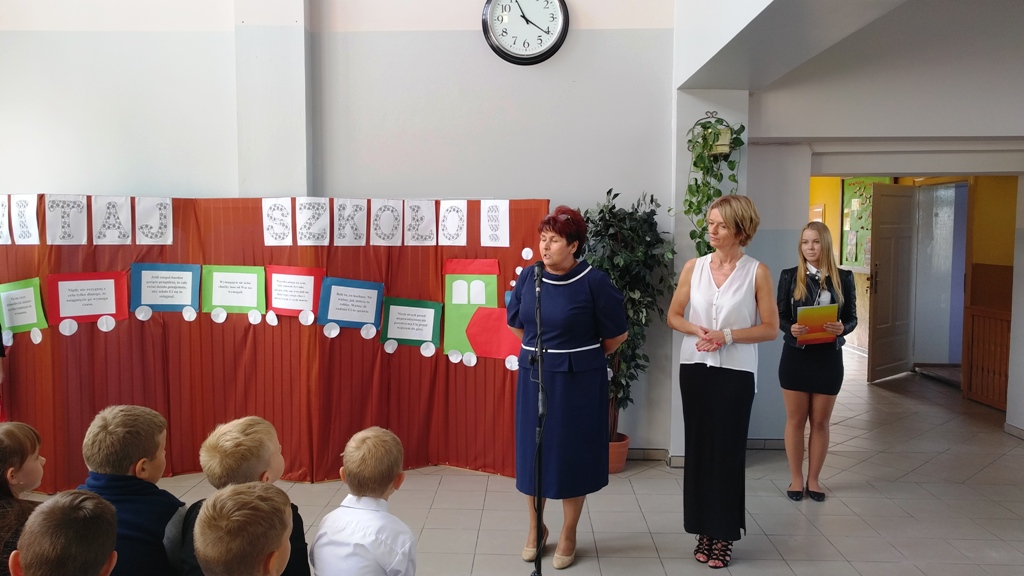 4 września 2017r. uroczyście powitaliśmy nowy rok szkolny. Dla uczniów i nauczycieli rozpoczął się czas nauki i ciężkiej pracy, ale także wspólnych chwil z kolegami i koleżankami. Pani Dyrektor Szkoły - Irmina Gilicka Zalas, powitała wszystkich bardzo serdecznie, podkreślając, że to dzień szczególny dla pierwszoklasistów, początek ich wielkiej przygody z nauką. Doniosłym momentem uroczystości było ślubowanie. Aktu pasowania dokonała pani dyrektor symbolicznym ołówkiem. Wychowawczyni kl.I wręczyła swoim uczniom słodkie upominki zasponsorowane przez Radę Rodziców. Do życzeń przyłączył się Mały Samorząd Uczniowski. Starsi uczniowie zobowiązali się służyć radą i pomocą młodszym kolegom i na dobry początek obdarowali pierwszaków drobnymi upominkami. Na zakończenie uroczystości pani dyrektor życzyła wszystkim uczniom sukcesów, motywacji i zapału do pracy.