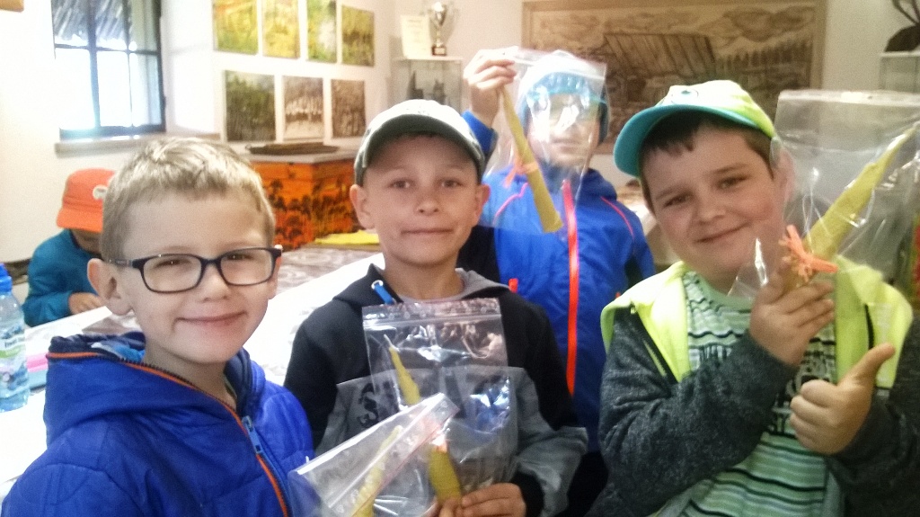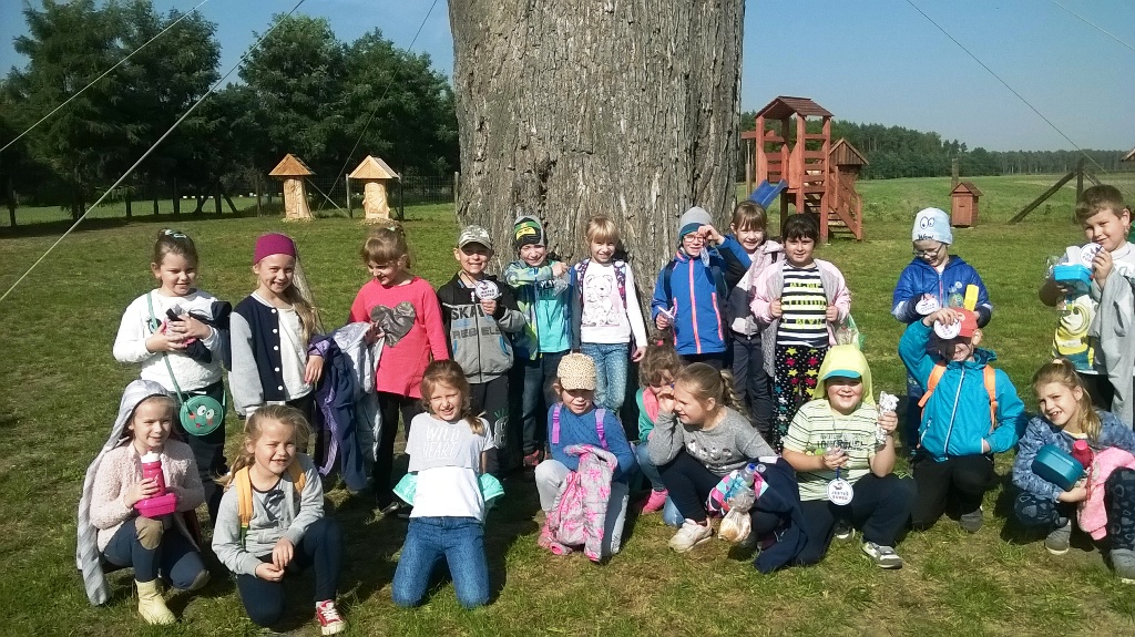 Korzystając ze słonecznej pogody, uczniowie kl. I z wychowawczynią odwiedzili we wrześniu zagrodę pszczelarską w Katarzynowie. Dzieci obejrzały skansen zabytkowych uli, dowiedziały się jak wyglądają poszczególne etapy życia pszczół i jak powstaje miód. Po ścieżce edukacyjnej oprowadziła ich właścicielka zagrody Justyna Bednarek, która bardzo ciekawie opowiadała o swojej pracy. Dzieci mogły też spróbować różnych rodzajów miodu i wykonać własnoręcznie świeczki z wosku pszczelego. Było też ognisko, kiełbaski oraz dużo dobrej zabawy.