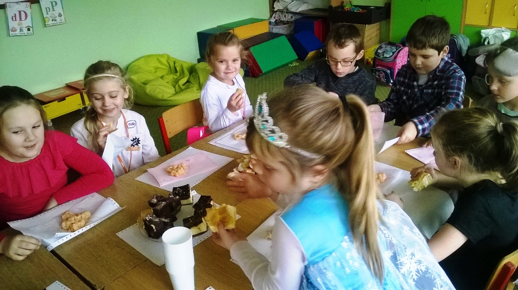 Ten dzień był dniem radosnych zabaw i wróżb, w których dzieci mogły poznać swoją bliższą i dalszą przyszłość. Nie zabrakło lania wosku, ustawiania bucików, przekłuwania serduszek z imionami, rzucanie monetą, wróżenie z kubeczków oraz z owoców, a także balonów z zawodami. Wróżby przeplatane były tańcami oraz zabawami przy skocznej muzyce. W połowie zabawy uczniowie raczyli się pysznymi kanapkami przygotowanymi przez rodziców oraz słodkościami w postaci muffinek i ciast. Zabawa była przednia, dzieci wróciły do domu w doskonałych humorach.