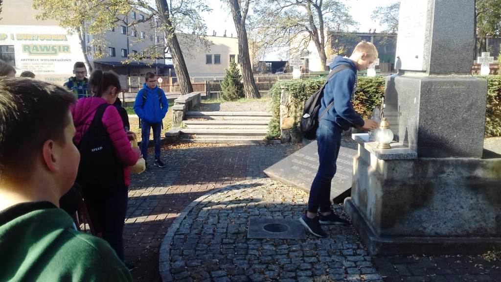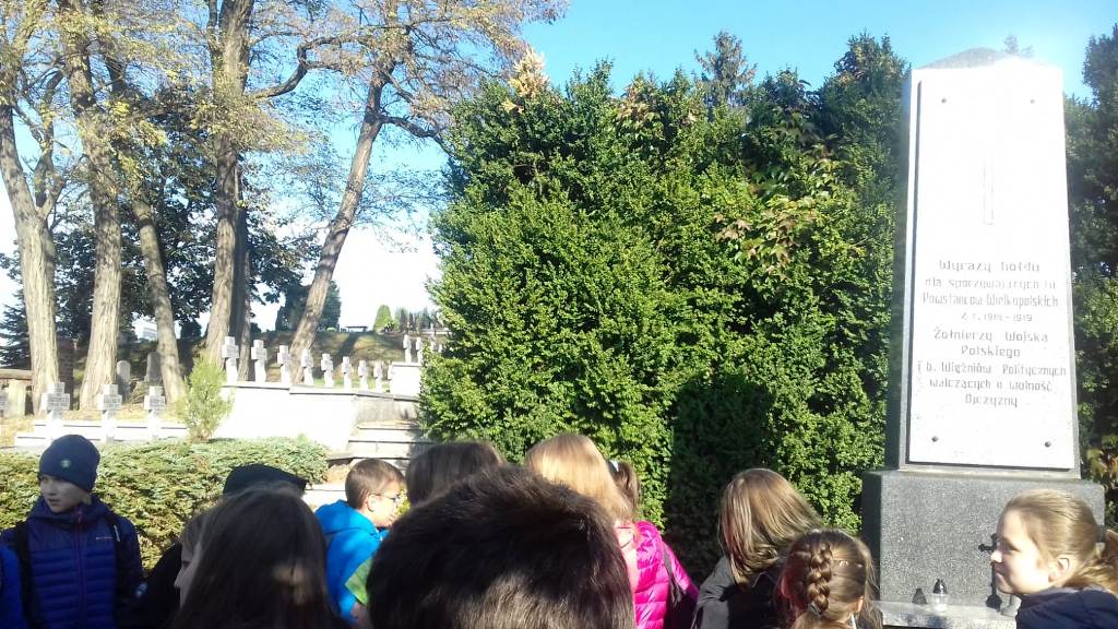 W dniu 22 października br. uczniowie klas VI i VII Szkoły Podstawowej w Szkaradowie brali udział w lekcji muzealnej zorganizowanej przez Muzeum Ziemi Rawickiej. Jej celem było zapoznanie się z przebiegiem powstania wielkopolskiego oraz odwiedzenie miejsc upamiętniających to wydarzenie na terenie Rawicza. Najpierw w budynku rawickiego ratusza, gdzie mieści się siedziba muzeum, uczniowie obejrzeli prezentację, która przybliżyła im historię powstania oraz wskazała gdzie znajdują się liczne miejsca pamięci: w Miejskiej Górce, Golejewku, Słupi Kapitulnej, Rawiczu, Jutrosinie, Bojanowie, Zielonej Wsi, Szymanowie, Białymkale, Szkaradowie. Następnie uczniowie udali się pod pomnik Żołnierza Polskiego, który jest ważnym miejscem dla mieszkańców miasta i powiatu, tu bowiem odbywają się patriotyczne uroczystości a jedna z tablic upamiętnia bohaterów wielkopolskiego zrywu powstańczego. Kolejnym miejscem gdzie udali się uczniowie był rawicki cmentarz. Tam odwiedzili grób Ignacego Buszy – przywódcy powstania na ziemi rawickiej oraz mogiły innych powstańców wielkopolskich . Następnie przeszli do grobów więźniów politycznych, którzy zginęli w rawickim więzieniu w czasie II wojny światowej oraz w latach stalinowskiego terroru. Odwiedzili kwaterę, na której spoczęli żołnierze wojny polsko – bolszewickiej, którzy zmarli w rawickim szpitalu na skutek odniesionych ran. Rawicką wędrówkę szlakiem miejsc pamięci uczniowie zakończyli przed pomnikiem katyńskim. Wszystkie te miejsca uczniowie uczcili minutą ciszy oraz zapalili na nich znicze.