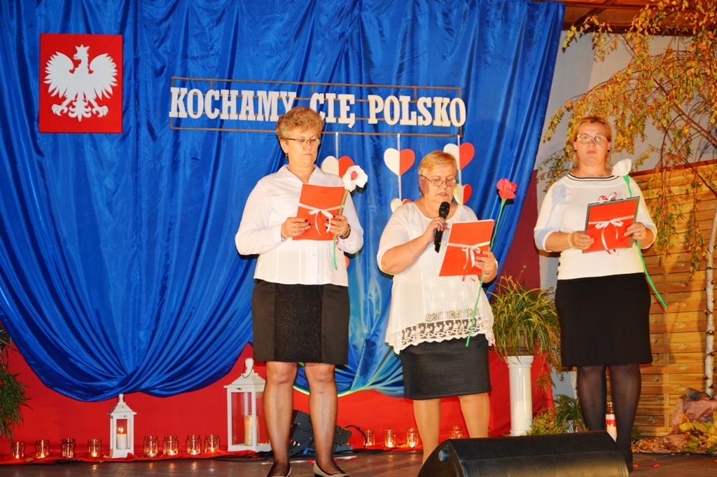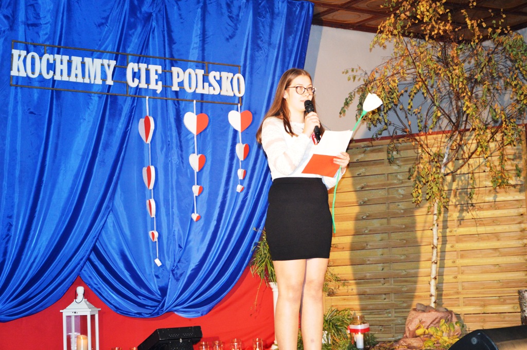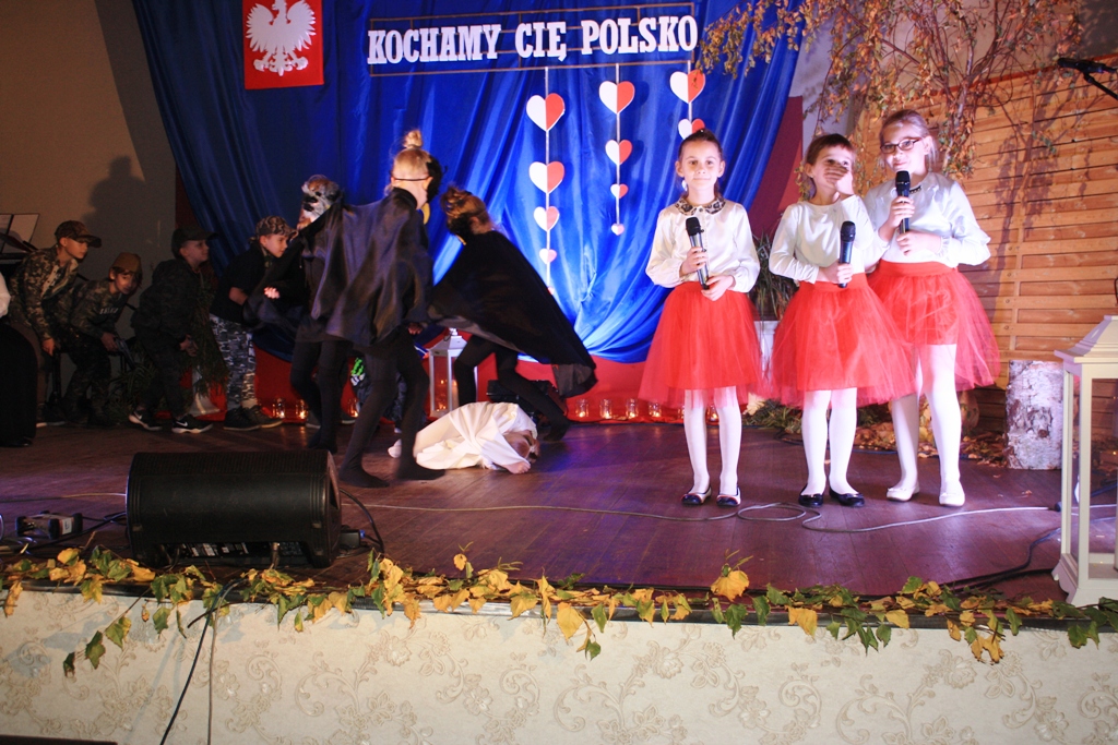 Członkinie Kółka Teatralnego oraz młodzież szkolna złożyli pod symbolicznymi brzozowymi krzyżami białe i czerwone znicze. Następnie rozpoczęła się część artystyczna. Recytowane były wiersze najsłynniejszych polskich poetów, takich jak Adam Mickiewicz, Juliusz Słowacki, Cyprian Kamil Norwid, Krzysztof Kamil Baczyński, Maria Konopnicka. Swoje talenty recytatorskie pokazali uczniowie klas IV SP oraz III GIM. Podczas recytacji w tle rozległa się muzyka Chopina, co dało dodatkowe efekty w odbiorze. Doskonałym uzupełnieniem były piosenki patriotyczne i wojskowe śpiewanie zarówno przez uczennice szkoły, jak i osoby dorosłe, które zaangażowały się w organizację uroczystości.