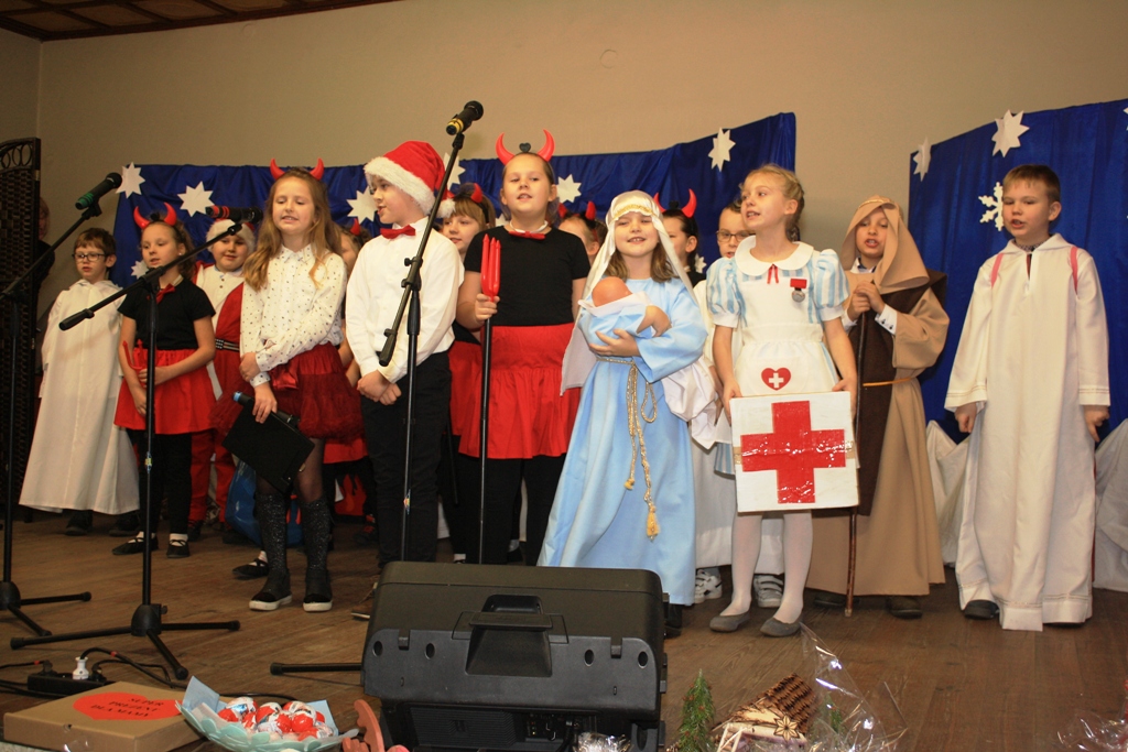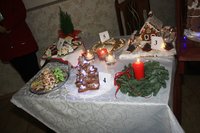 Rodziny naszych uczniów miały okazję podziwiać występy artystyczne przygotowane przez wychowawczynie klas I-III oraz opiekunów zespołów artystycznych. Pięknie zaprezentowała się chluba naszej szkoły czyli Dziecięca Grupa Obrzędowa „Szakiety”. Podziwialiśmy również klasę II, która w ramach zajęć rozwijających kreatywność przygotowała wraz ze swoją wychowawczynią Izabelą Goździk żartobliwe przedstawienie „Jasełka na wesoło”. W czasie Kiermaszu odbył się tradycyjny konkurs piernikowy. Tym razem przedstawiono 7 prac. Bezapelacyjnie w kategorii gimnazjalnej wygrał piernikowy kościółek przygotowany przez Kajetana Grabowskiego a w kategorii szkoły podstawowej wygrał piernikowy powóz św. Mikołaja przygotowany przez Izę Kalkę. Panie Anna Kaczmarek, Iwona Stachowiak i Kamila Juskowska serdecznie dziękują wszystkim sponsorom nagród w konkursie piernikowym.