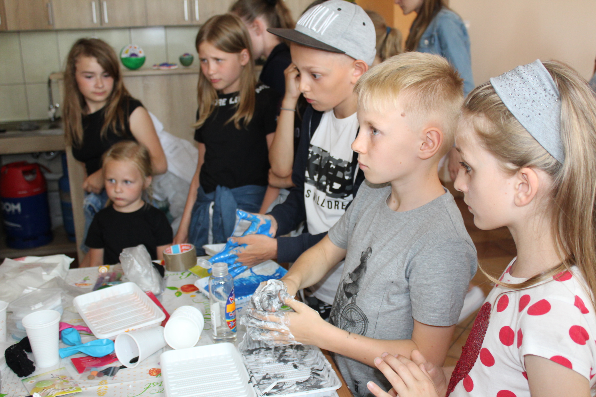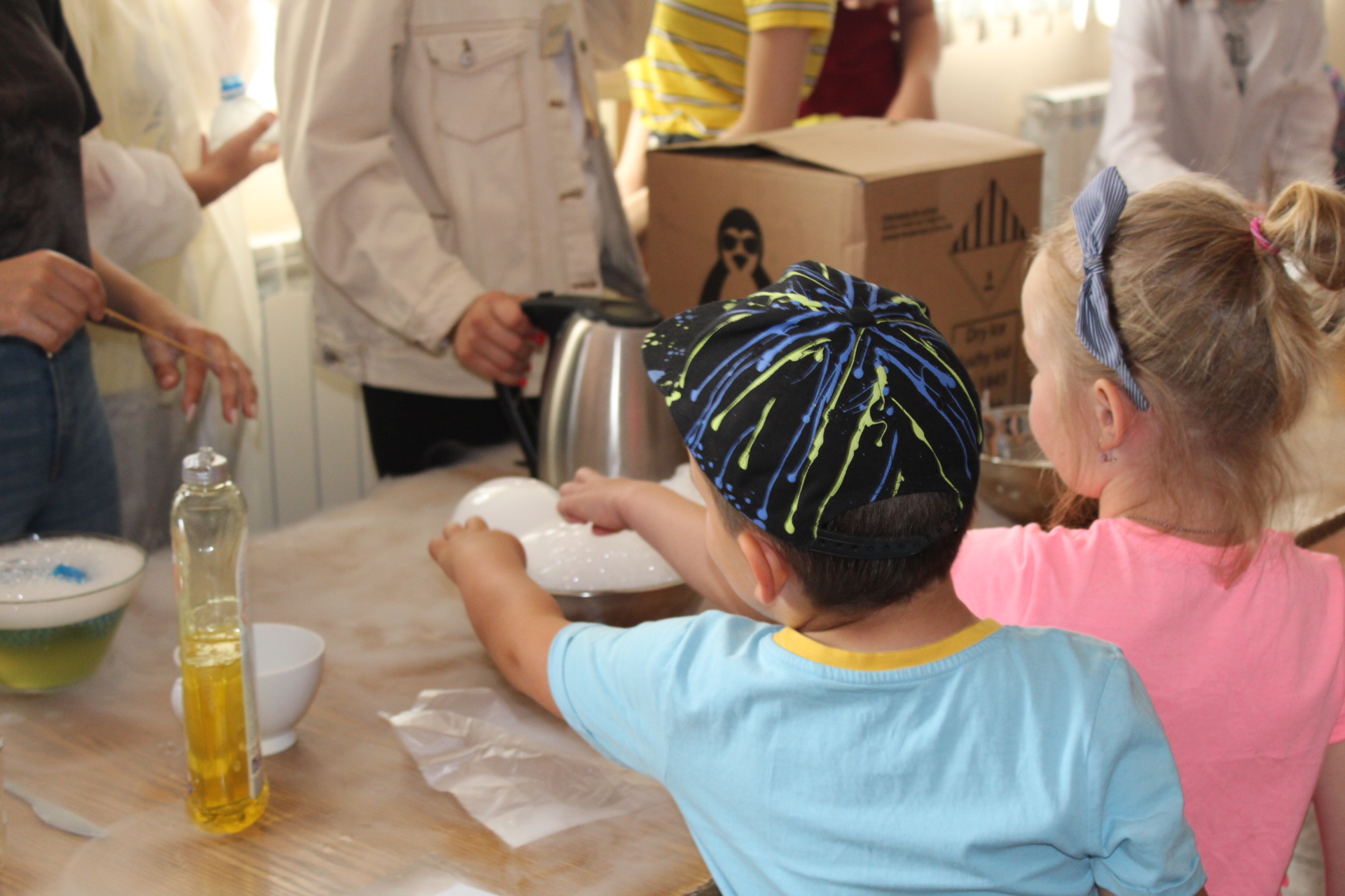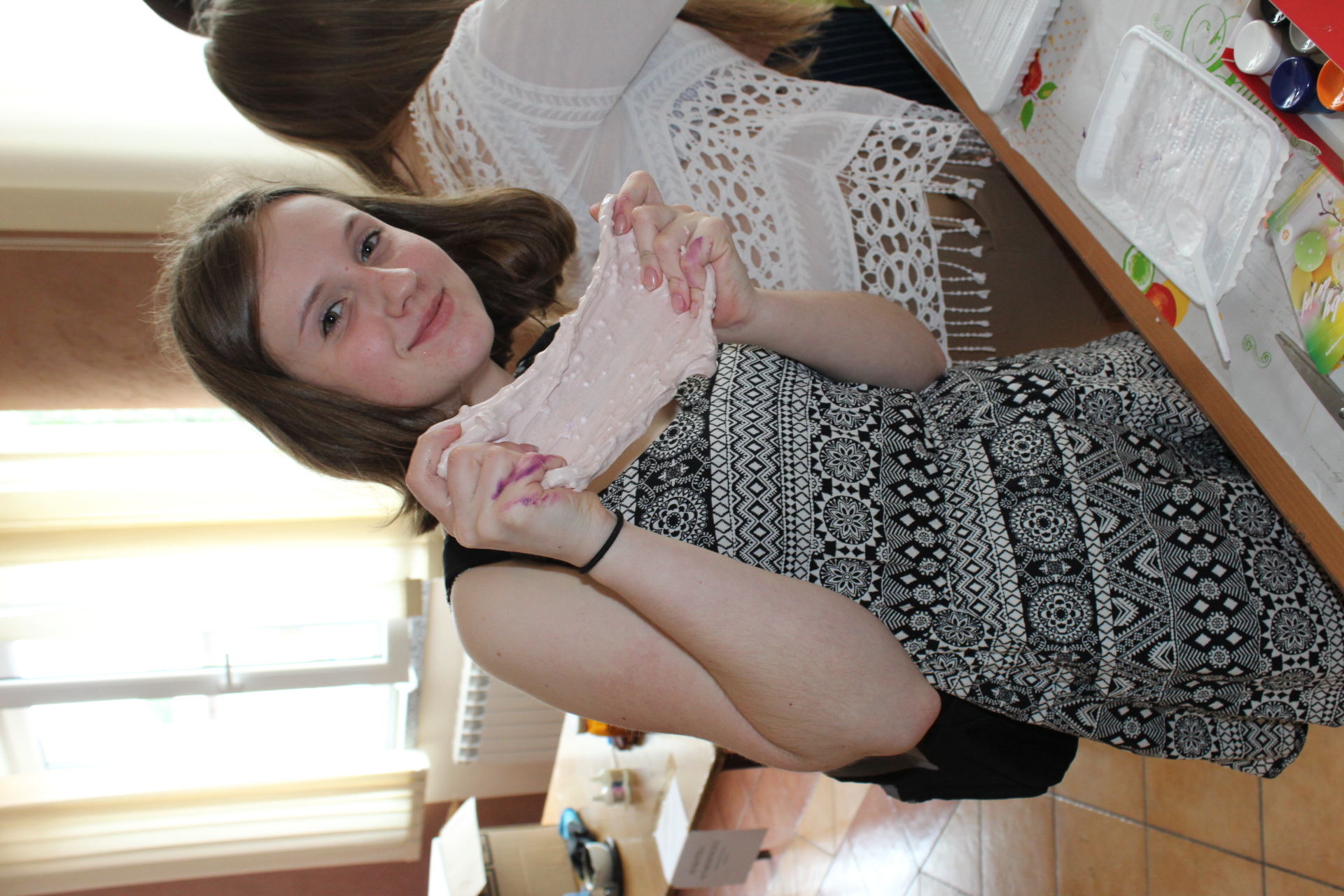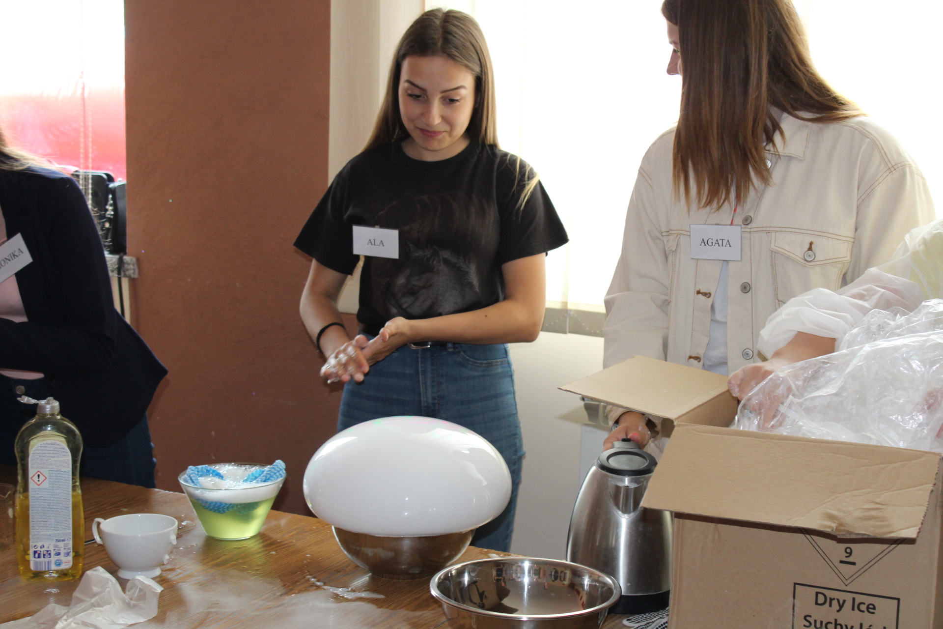 Oprócz tego przeprowadziliśmy również cieszące się niebywałym zainteresowaniem doświadczenia z suchym lodem i wskaźnikami Ph a dla najmłodszych przeznaczyliśmy stoisko produkcji slimów.