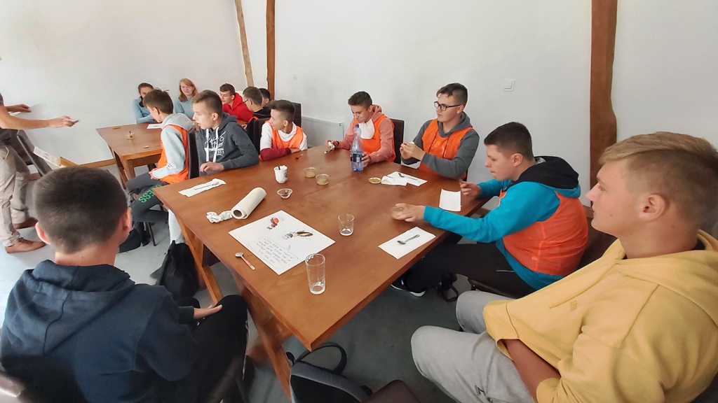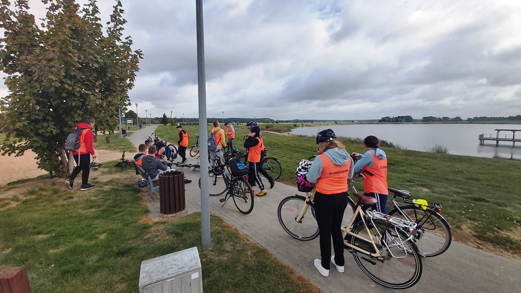 1 października 2020 roku uczniowie klasy 8 wraz ze swoim wychowawcą panem Mirosławem Barteczką, chcąc wykorzystać jesienną dobrą pogodę, wybrali się tym razem na wycieczkę rowerową. W wyprawie jako opiekun towarzyszył nam również pan Piotr Ryś. Zaplanowana wcześniej trasa wiodła w pierwszej kolejności nad zalew Pakosław, gdzie czekał na nas pan Kazimierz Chudy. Opowiedział nam o swojej pasji, jaką jest modelarstwo, pokazał swoje prace i zachęcał do udziału w tego typu zajęciach, jeśli mamy taką możliwość. Drugim punktem wycieczki była wizyta w pasiece pszczelarskiej w Pakosławiu. Pan Piotr Smakulski opowiadał o życiu pszczół, ich pracy i pozyskiwanych dzięki nim produktach. Były też przygotowane dla uczniów tematyczne zagadki i zadania do wykonania. Następnie udaliśmy pod wiatę, gdzie pan Piotr przygotował dla nas ognisko, na którym smażyliśmy kiełbaski. Po krótkim odpoczynku oraz posiłku, uzbrojeni w kaski i kamizelki, udaliśmy się w drogę powrotną do Szkaradowa.