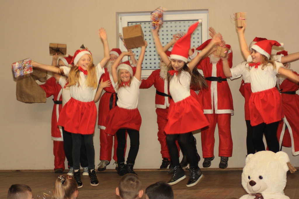 Na Kiermasz przybyły całe rodziny aby podziwiać występy naszych uczniów. Dzieci w pięknych strojach, uszytych dzięki współpracy z miejscowymi krawcowymi oraz przy finansowym wsparciu rodziców zaprezentowały różne tańce od połamańców po zumbę. Dziękujemy za przygotowanie tańców paniom: Renacie Leśniak, Marii Adamiak, Izabelii Goździk, Martynie Barteczce, Ewie Lorenz i Magdalenie Andrzejewskiej. Zuzanna Musielak i Hania Ciupak zaprezentowały swoje umiejętności wokalne śpiewając kolędy w języku angielskim.