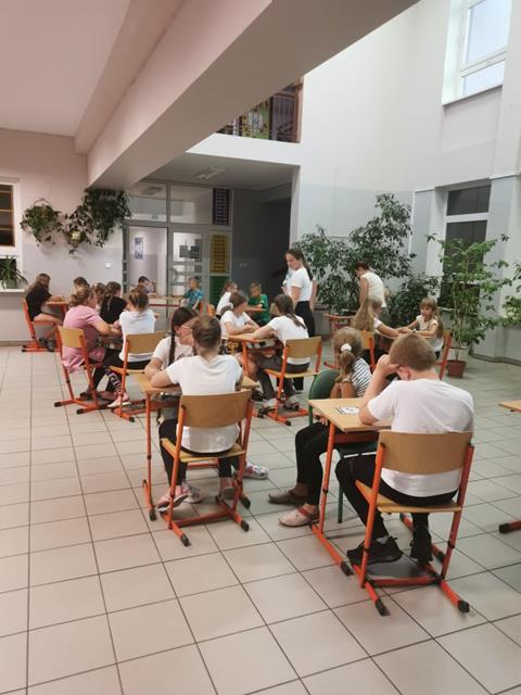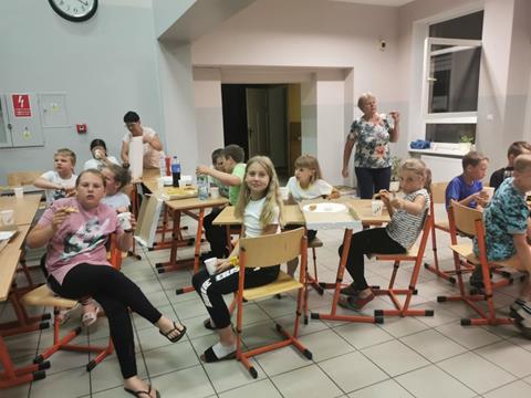 Uczniowie klasy IV noc 23/24 czerwca 2021 roku spędzili w szkole. Wieczór rozpoczęli od wspólnych gier i zabaw. Były m.in: "Bingo", "Gorące krzesła", "Zamiana miejsc" i wiele, wiele innych. Około północy odbyły się podchody w budynku szkoły. Na dzieci czekało mnóstwo różnych, ciekawych i śmiesznych zadań do wykonania. W międzyczasie dzieci posiliły się smaczną pizzą i słodkimi goframi. Zabawa była udana, nikt nie spał, a dzieci bawiły się do samego rana.