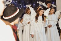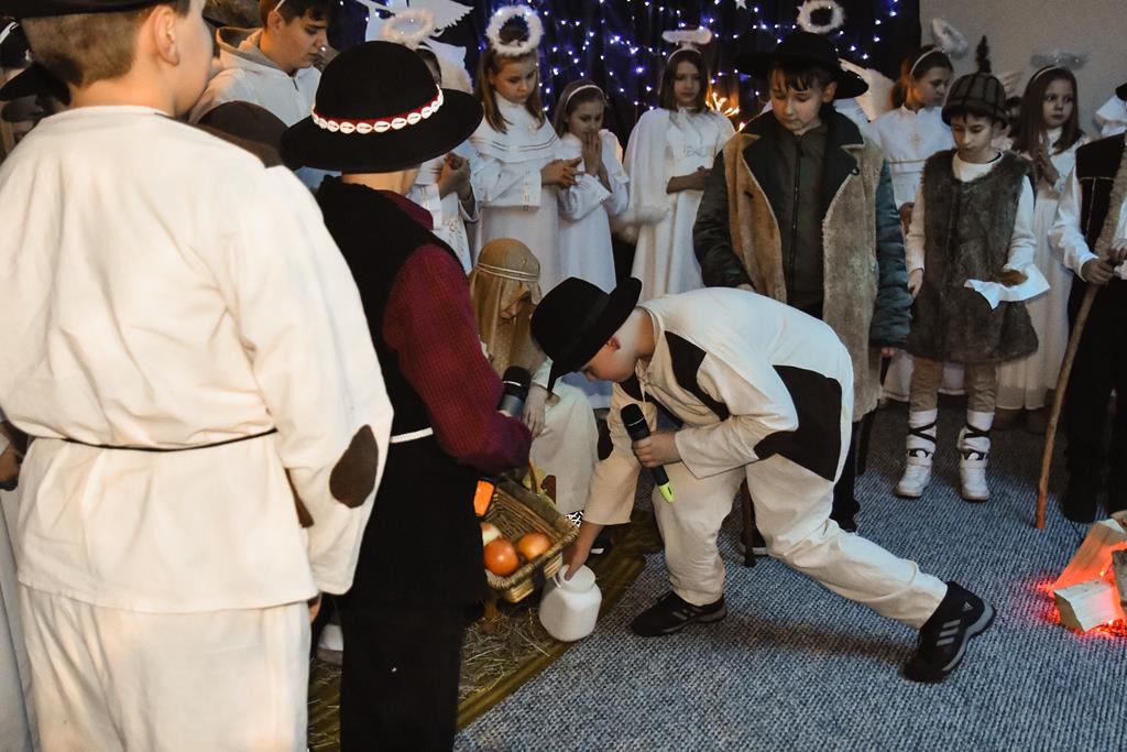 W minioną niedzielę sala w Szkaradowie stała się miejscem magicznego wydarzenia, które zgromadziło nie tylko uczniów i nauczycieli Szkoły Podstawowej im. Stanisława Ratajczaka w Szkaradowie, ale również rodziców, dziadków, ciocie i wujków oraz sąsiadów i innych przedstawicieli lokalnej społeczności. Występ jasełkowy, przygotowany przez uczniów pod opieką nauczycieli, zachwycił wszystkich obecnych. Jasełka to coroczna tradycja, która łączy pokolenia i przypomina o wartościach świąt Bożego Narodzenia: miłości, pokoju i wspólnocie. W tym roku uczniowie zaprezentowali niezwykle poruszającą interpretację historii narodzin Jezusa, wzbogaconą o piękne kolędy i pastorałki. Każdy z występujących wcielił się w swoją rolę z ogromnym zaangażowaniem, co nie umknęło uwadze widowni. Wszyscy młodzi aktorzy, a było ich 50 pokazali swoje talenty aktorskie, wokalne i artystyczne. Dekoracje, przygotowane z dbałością o detale, przeniosły wszytkich w klimat Betlejem, a kostiumy dodatkowo podkreślały autentyczność przedstawienia. Wydarzenie było także okazją do wspólnego śpiewania kolęd. Publiczność chętnie przyłączyła się do wykonania takich utworów jak „Pójdźmy wszyscy do stajenki” czy „Lulaj go Matko lulaj”. Wspólne kolędowanie sprawiło, że każdy poczuł się częścią tej niezwykłej chwili.Magiczne przedstawienie wspólnie z uczniami przygotowały nauczycielki: Iwona Eliasz, Katarzyna Frąckowiak, Katarzyna Chmielarczyk, Joanna Kapała ze wsparciem całego grona i dyrektora. Rada Rodziców szkoły włączyła się w organizację tego przedsięwzięcia i przygotowała dla wszystkich przybyłych ciepłe napoje i słodkie przekąski. Dziękujemy wszystkim, którzy zaszczycili nas swoją obecnością i stworzyli niepowtarzalną atmosferę. Zdjęcia zostały zrobione i udostępnione przez Panią Jowitę Maryniak. Jasełka szkolne to wydarzenie, które na długo pozostanie w naszych sercach. Dziękujemy za wspólnie spędzony czas i już teraz zapraszamy na kolejne przedstawienia w przyszłym roku. Niech magia świąt towarzyszy nam wszystkim przez cały rok!