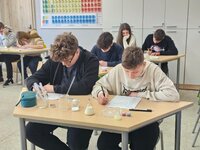Dnia 25.03.2025 r. w Szkole Podstawowej im. Władysława Bartkowiaka w Jutrosinie odbył się konkurs przyrodniczy pod hasłem „Ziemia, woda, powietrze”. Celem konkursu było propagowanie wiedzy z zakresu biologii, chemii i geografii oraz zachęcanie uczniów do przeprowadzania prostych doświadczeń. Uczestnicy konkursu musieli wykazać się ogólną wiedzą z zakresu tych przedmiotów, rozwiązując test z zadaniami zamkniętymi i otwartymi, a w drugiej części musieli wykazać się znajomością rzek na mapie Polski. Podczas ostatniej części uczestnicy samodzielnie przeprowadzili trzy doświadczenia, a następnie zapisali obserwacje i wyciągali wnioski. Naszą szkołę w konkursie reprezentowali uczniowie klasy VIII: Kamil Pawlak i Filip Kantorski.