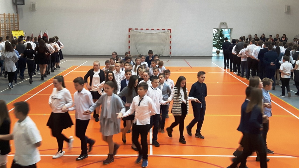 11 listopada, to rocznica odzyskania przez Polskę niepodległości, a tym samym uroczyste świętowanie tego wielkiego wydarzenia. W naszej szkole odbyła się z tej okazji akademia, która rozpoczęła się od wprowadzenia sztandaru szkoły i odśpiewaniu hymnu narodowego. Największym wydarzeniem apelu było zatańczenie Poloneza przez wszystkich uczniów naszej szkoły. Korowód prowadziła szkolna Dziecięca Grupa Obrzędowa „Szakiety”. W dalszej części apelu wszystkie klasy szkoły podstawowej i gimnazjum wraz z wychowawcami przygotowały krótkie występy upamiętniające ten wielki dzień.