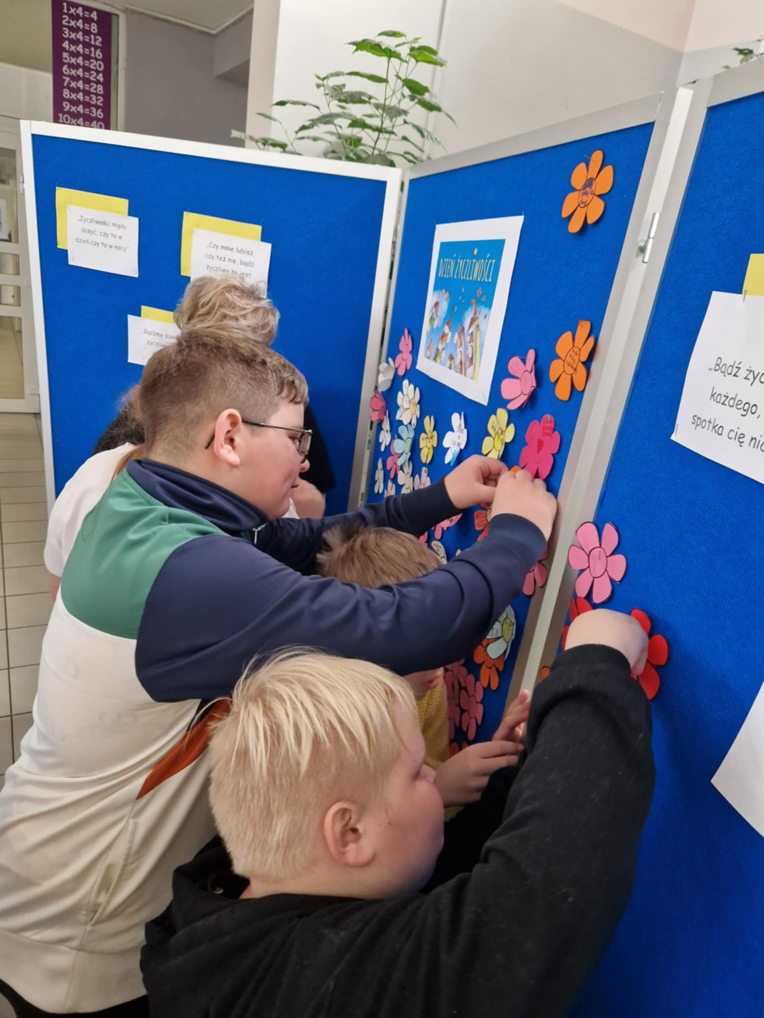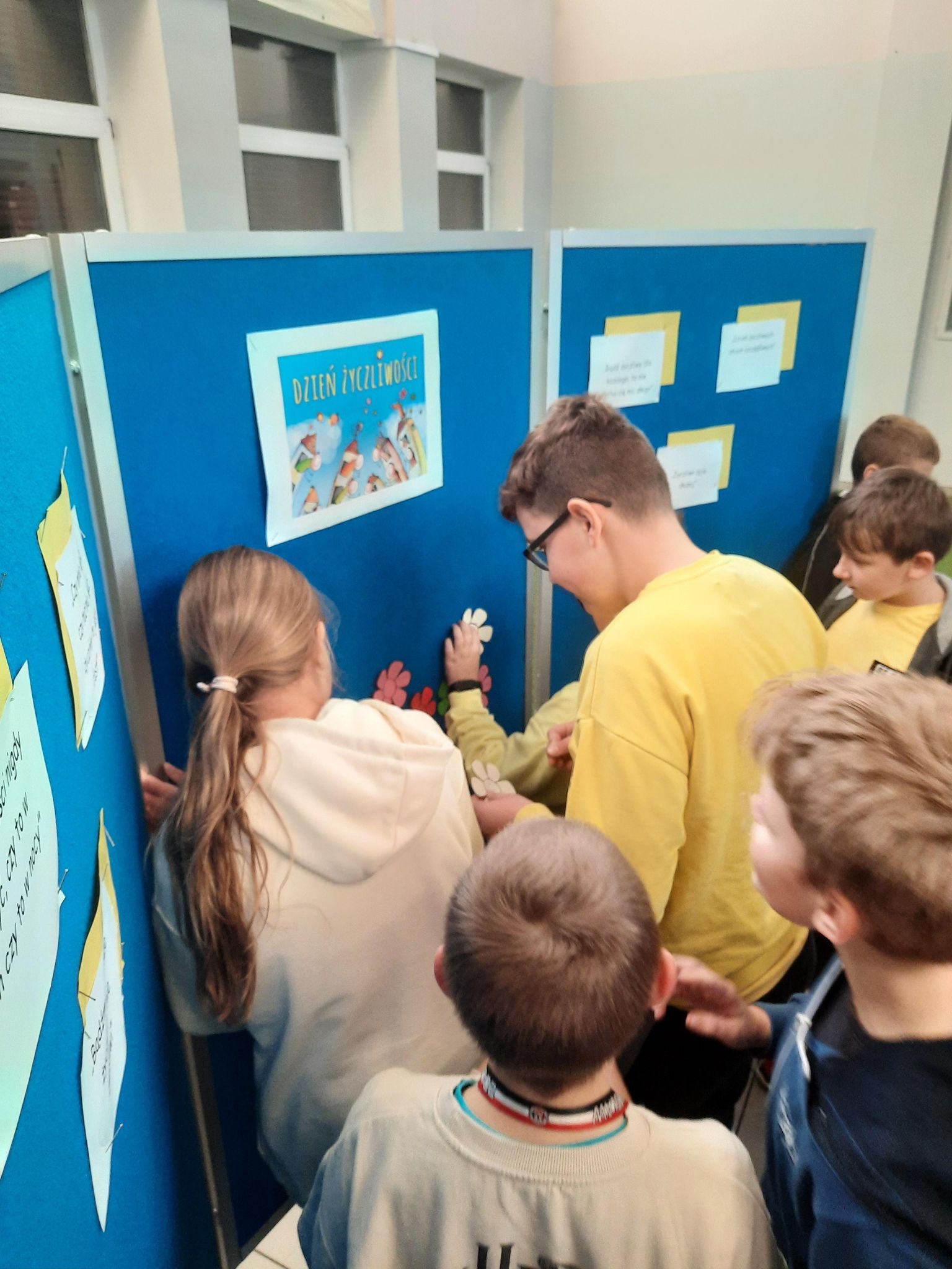 Już po raz kolejny obchodziliśmy w naszej szkole Dzień Życzliwości. Uśmiech, serdeczność i wzajemne ciepło są dobre na wszystko, a życzliwość ma niezwykłą moc. Świętowanie tegorocznego Dnia Życzliwości rozpoczęliśmy od samego rana. Uczniowie przyszli do szkoły ubrani w kolorze żółtym- który jest symbolem radości i optymizmu. Na korytarzu pojawiła się gazetka z cytatami oraz wazonem, który był miejscem na „Bukiet Życzliwości” stworzony przez uczniów. Dodatkowo przedstawiciele SU przeczytali swoim koleżankom i kolegom kilka ciekawostek na temat Dnia Życzliwości, wręczyli karteczki z miłymi słowami oraz poczęstowali każdego słodkim upominkiem. Dzień Życzliwości utwierdził nas w przekonaniu, że warto być życzliwym na co dzień. Pamiętajmy, że to nic nie kosztuje, a sprawia radość i uśmiech wielu osobom.