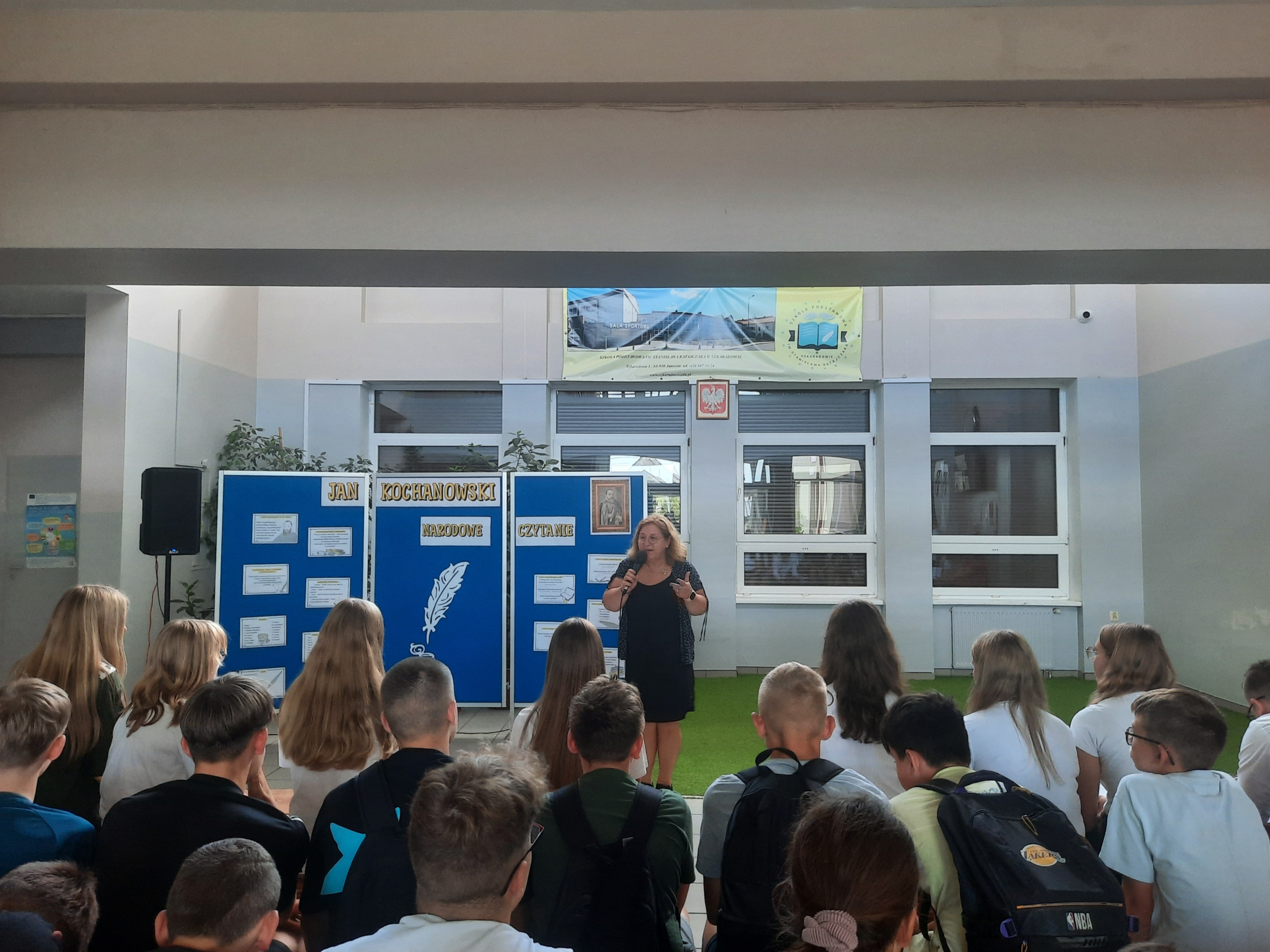 W tym roku uczniowie wraz z nauczycielkami języka polskiego sięgnęli po twórczość wybitnego poety epoki renesansu – Jana Kochanowskiego. Wspólne czytanie jego poezji, pełnej mądrości, refleksji i piękna języka, stało się nie tylko lekcją literatury, ale i wartościowym spotkaniem z klasyką polskiej kultury.