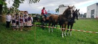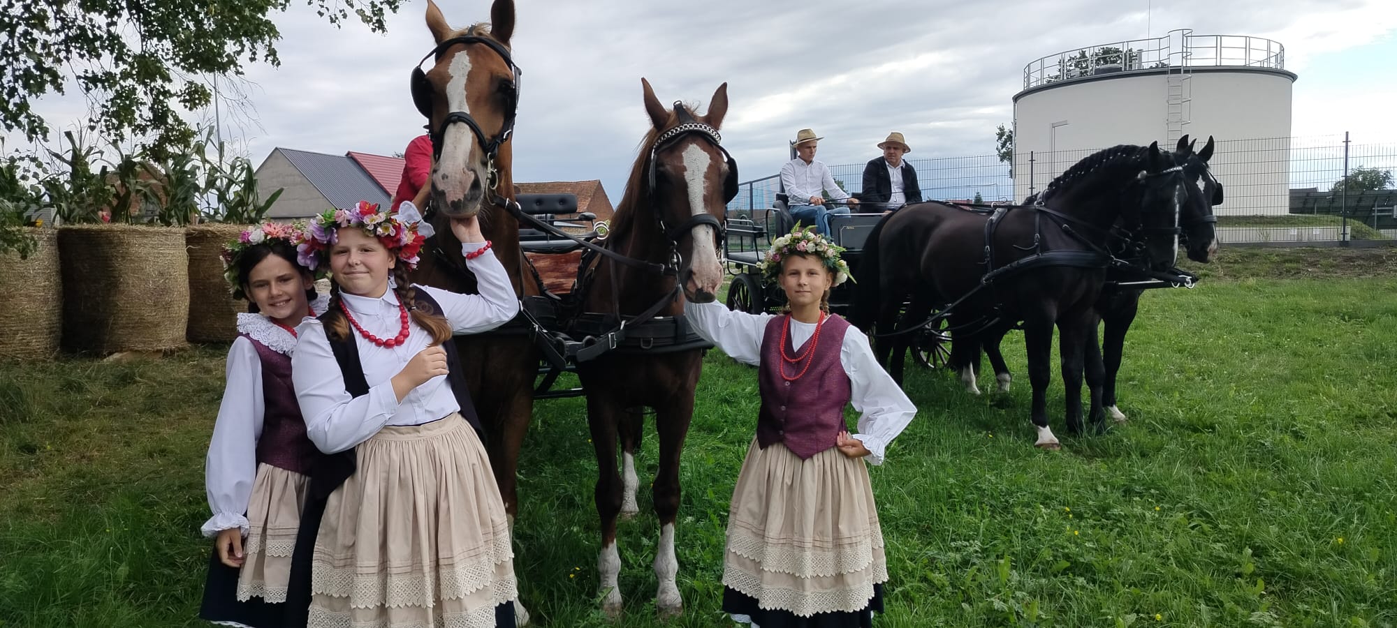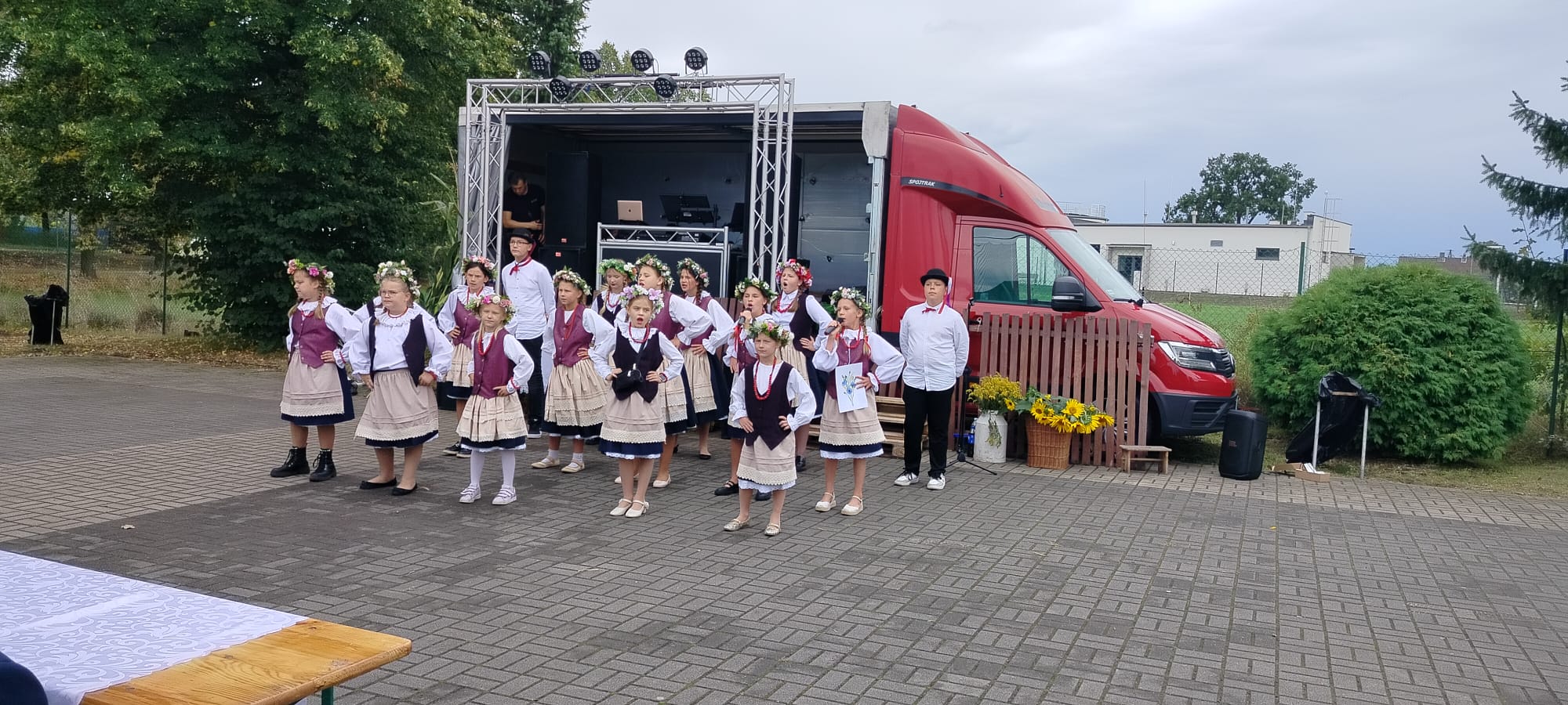 Młodzi artyści zaprezentowali tradycyjny program obrzędowy, nawiązujący do dawnych zwyczajów dożynkowych i folkloru naszego regionu. W barwnych strojach ludowych, z zaangażowaniem i autentycznością przedstawili przyśpiewki i piosenki, które spotkały się z ciepłym przyjęciem i gromkimi brawami od zgromadzonej publiczności. Występ „Szakietów” był nie tylko piękną formą uczczenia pracy rolników, ale też znakomitą okazją do kultywowania tradycji i integracji ze środowiskiem lokalnym. Dziękujemy organizatorom za zaproszenie, a dzieciom za włożone serce i zaangażowanie.