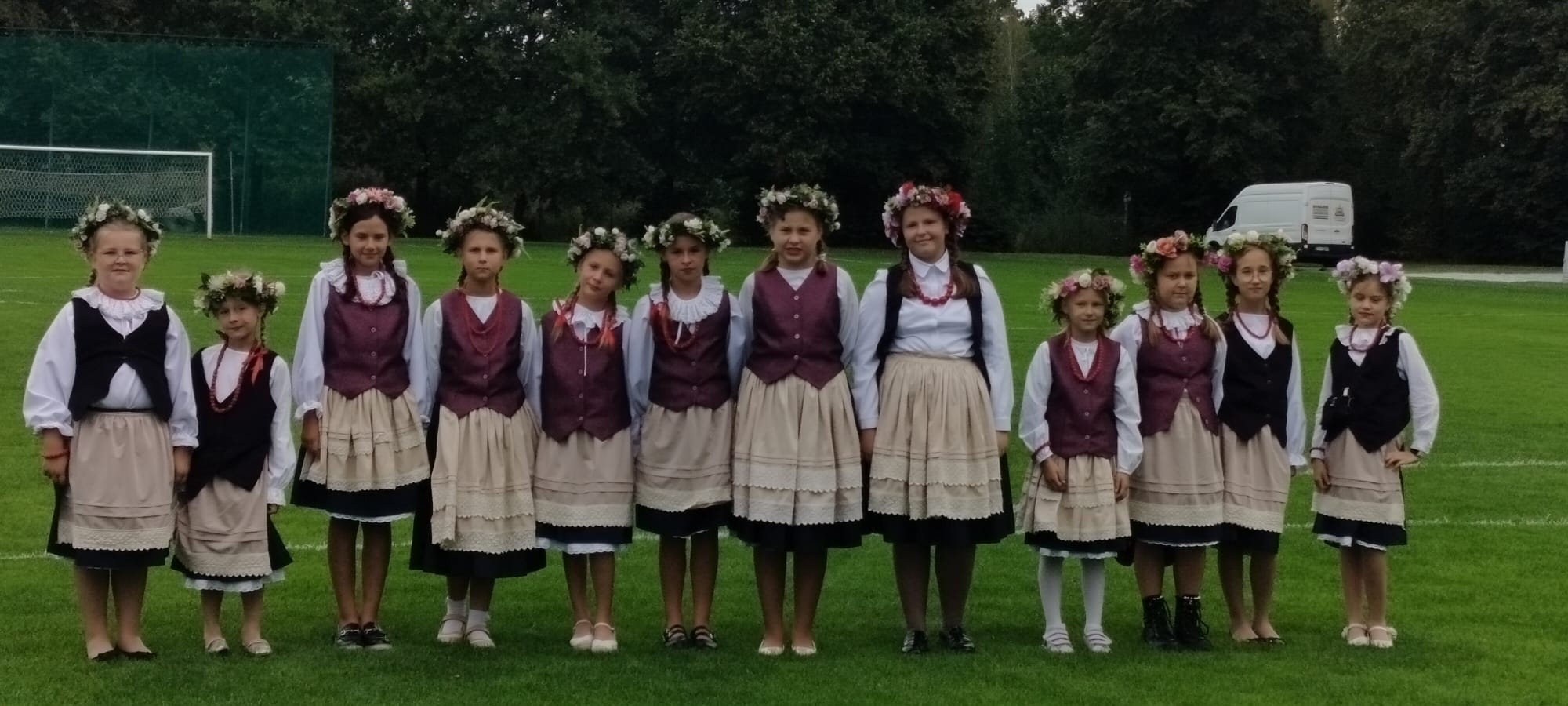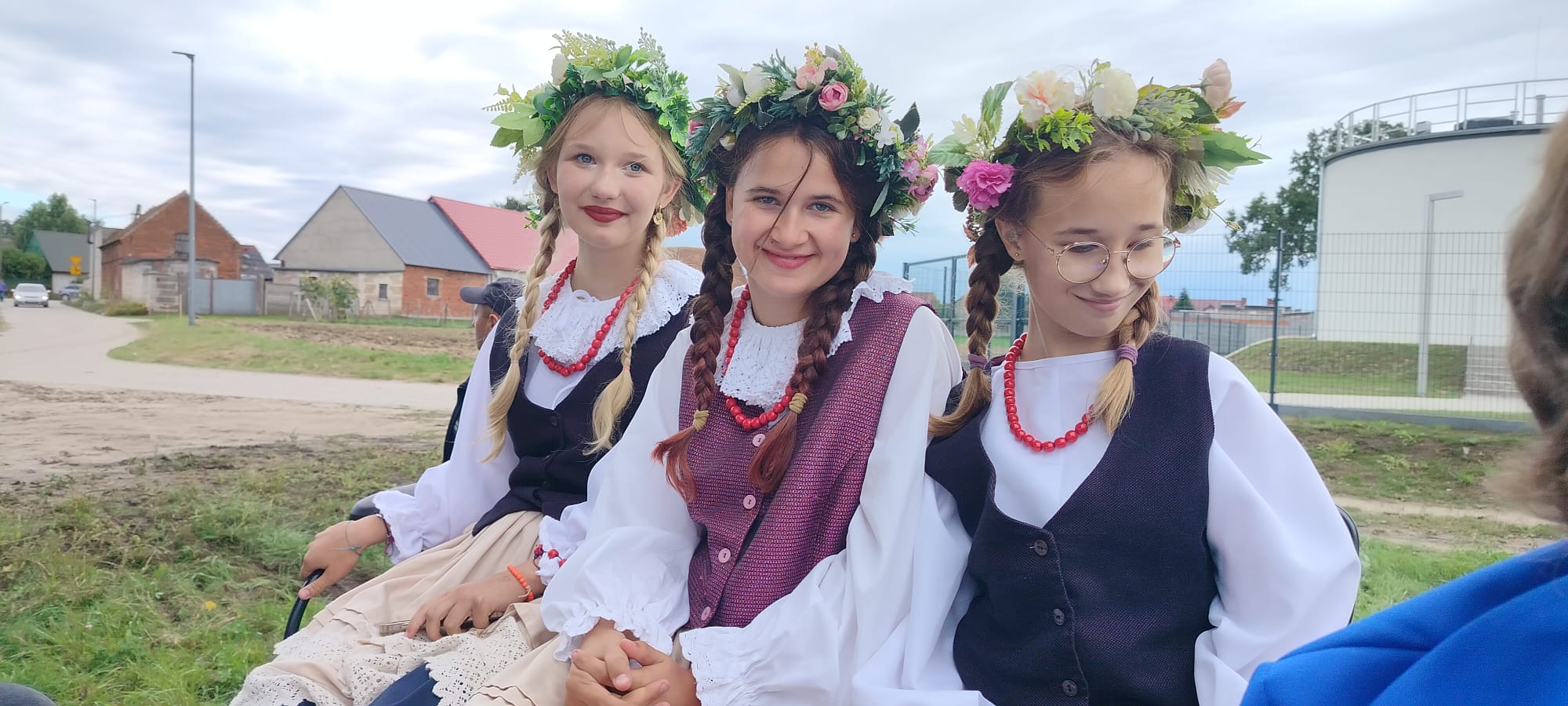 W sobotę 6 września 2025 r., dziecięca grupa obrzędowa „Szakiety” działająca przy naszej szkole miała zaszczyt wystąpić podczas dożynek w Dębnie Polskim.