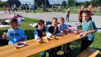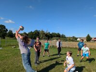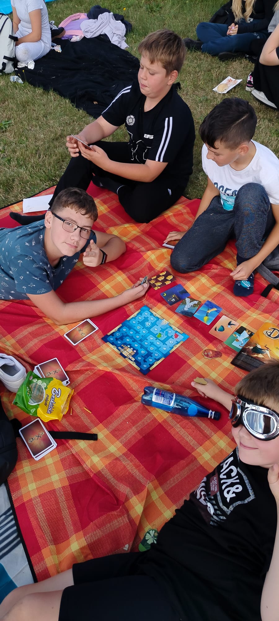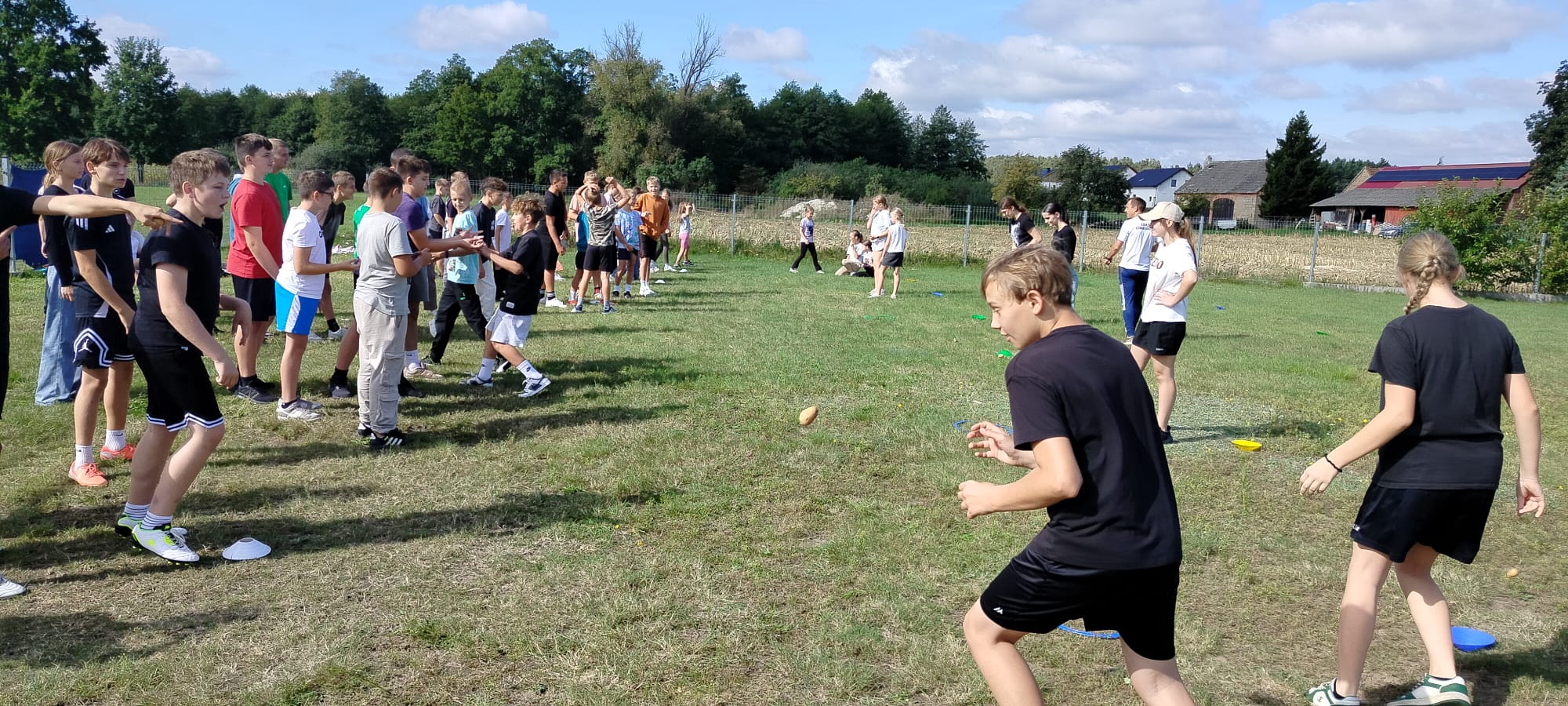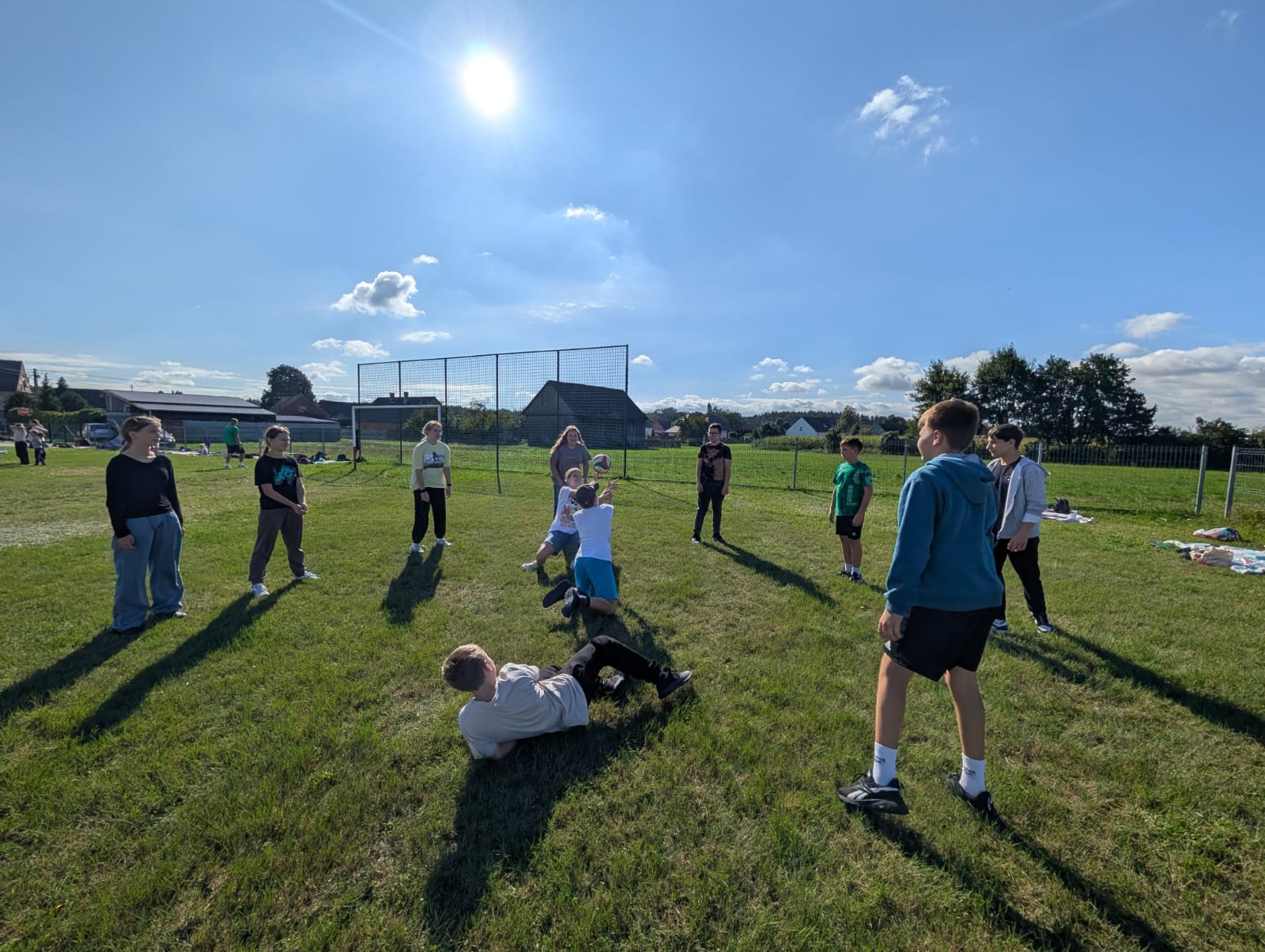 19 września 2025 roku odbył się w naszej szkole wyjątkowy „Dzień Pieczonego Ziemniaka”. Wszyscy uczniowie wraz z nauczycielami udali się do Jezior, aby miło i aktywnie spędzić czas na świeżym powietrzu. Pogoda była wymarzona, cały dzień towarzyszyło nam piękne, słoneczne niebo, co dodatkowo umiliło wspólną zabawę. Na uczestników czekało wiele atrakcji i niespodzianek. Odbywały się emocjonujące rozgrywki sportowe, zabawy z chustą animacyjną, a dziewczynki z zapałem skakały na skakance, bijąc własne rekordy i świetnie się przy tym bawiąc. Dla tych, którzy preferują spokojniejsze formy wypoczynku, był też czas na leniuchowanie i przyjacielskie rozmowy. Po wspólnej zabawie wszyscy mogli posilić się pyszną, chrupiącą kiełbaską i pachnącymi pieczonymi ziemniakami, przygotowanymi na grillu przez naszych niezawodnych pracowników obsługi.