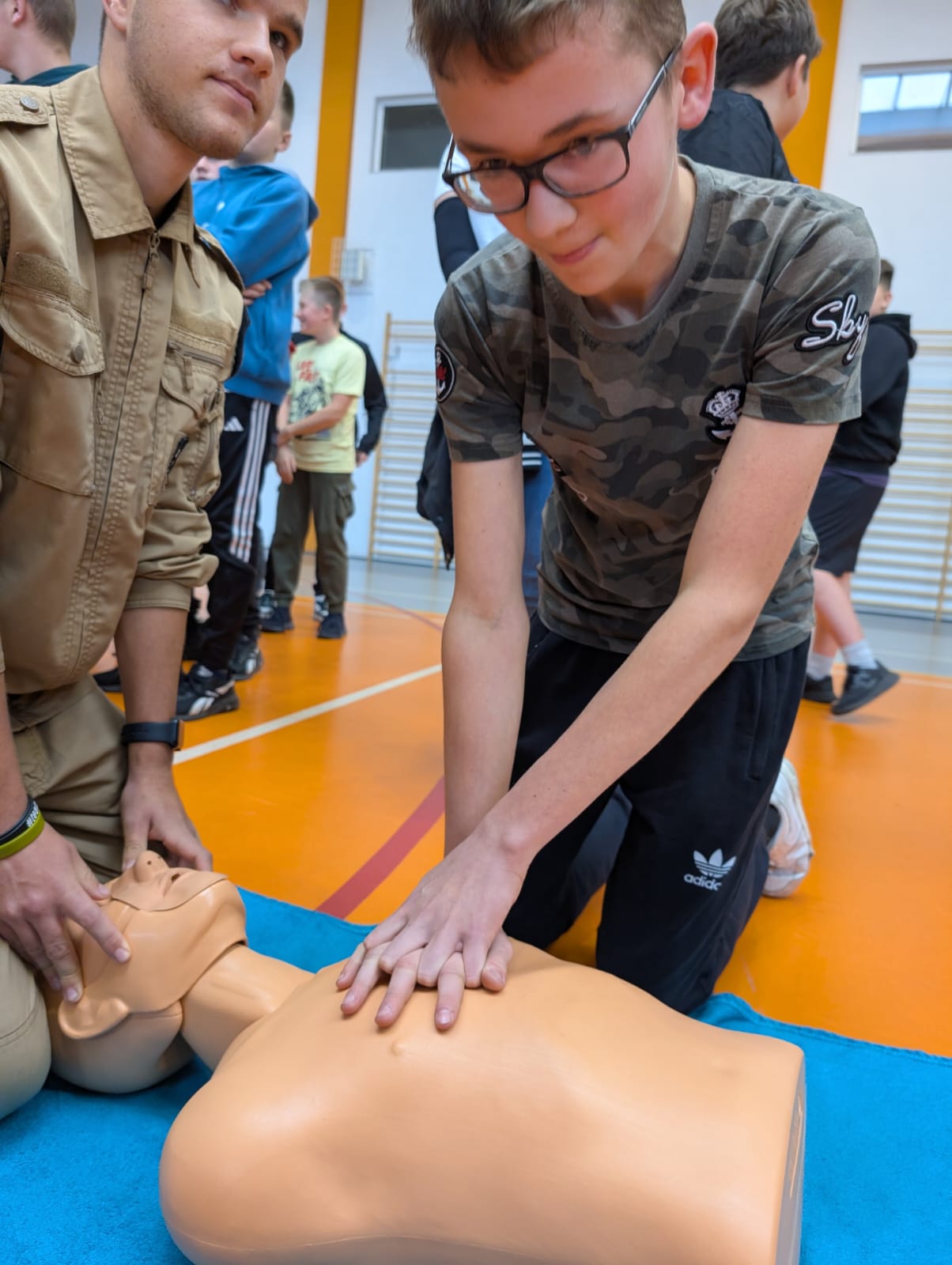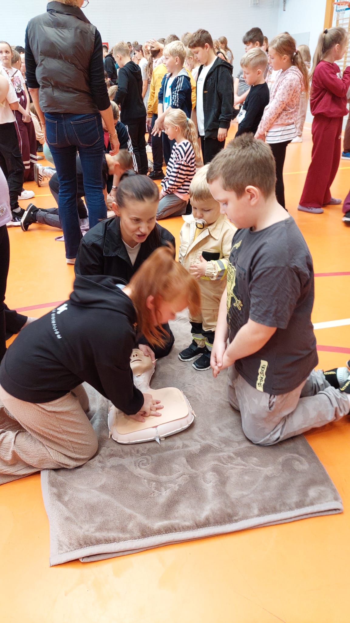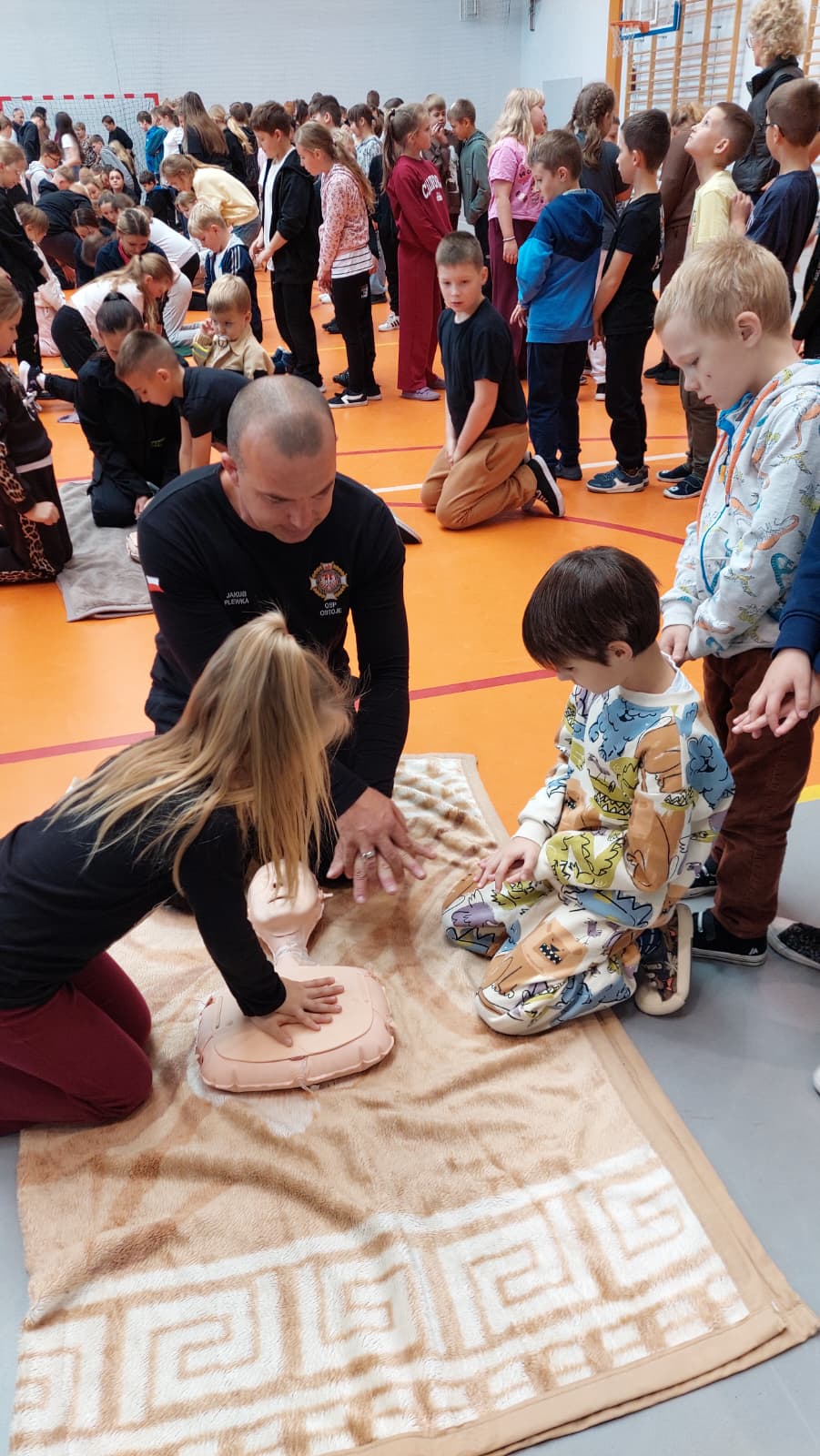 16 października , Społeczność Szkoły Podstawowej im. Stanisława Ratajczaka w Szkaradowie z ogromnym zaangażowaniem wzięła udział w kolejnej edycji ogólnopolskiej akcji Wielkiej Orkiestry Świątecznej Pomocy, polegającej na biciu rekordu w jednoczesnym prowadzeniu resuscytacji krążeniowo-oddechowej (RKO). W wydarzeniu uczestniczyło ponad 200 osób – uczniów, nauczycieli, pracowników oraz zaproszonych gości. Cennym wsparciem byli druhowie z OSP Ostoje z panem Jakubem Plewką na czele, którzy służyli pomocą i dzielili się swoją wiedzą. W wydarzeniu wziął udział pan Mateusz Janicki – Przewodniczący Rady Miejskiej w Jutrosinie, który podkreślił wagę edukacji w zakresie udzielania pierwszej pomocy. Wspólne działanie całej społeczności pokazało, jak ważna jest współpraca i solidarność w służbie ratowania życia.Dziękujemy wszystkim za obecność, energię i serce włożone w to wyjątkowe przedsięwzięcie.
