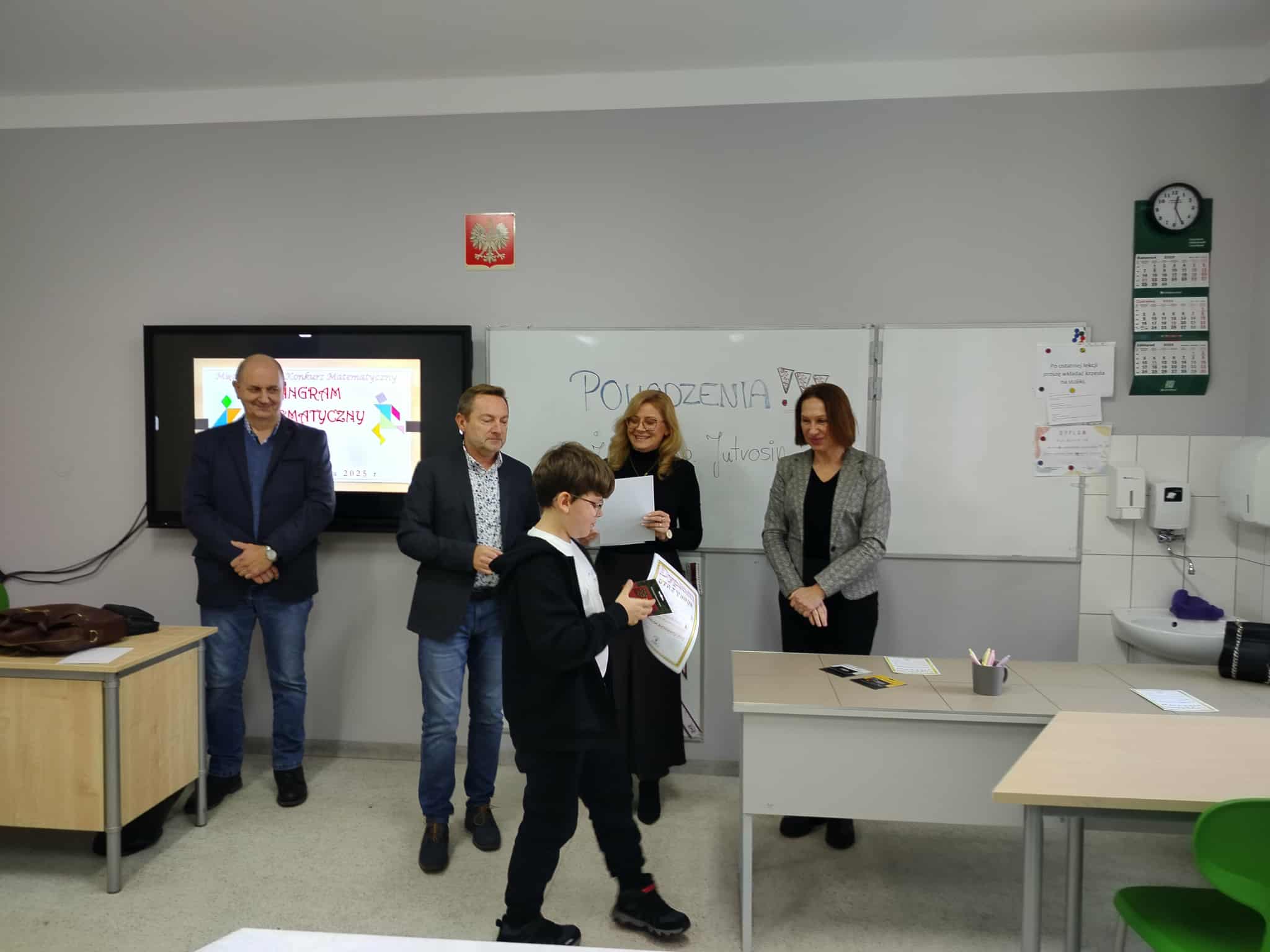 Dnia 1 grudnia 2025r. w Szkole Podstawowej w Jutrosinie odbył się międzyszkolny konkurs TANGRAM MATEMATYCZNY. Udział w nim wzięli uczniowie z pięciu szkół podstawowych. Naszą szkołę reprezentowali : Igor Kasprzak w kategorii klas IV-V oraz Anita Sierpowska w kategorii klas VI – VIII. Zadanie polegało na ułożeniu 3 figur w czasie 20 minut. Igor zajął III miejsce. Serdecznie gratulujemy i życzymy dalszych sukcesów.