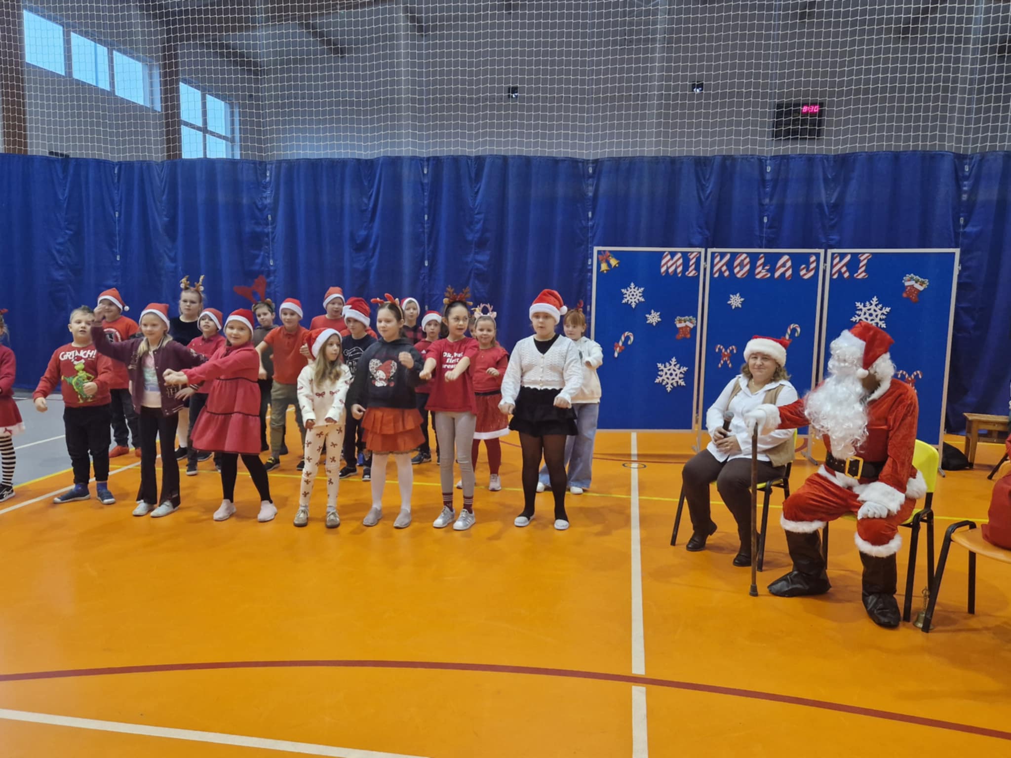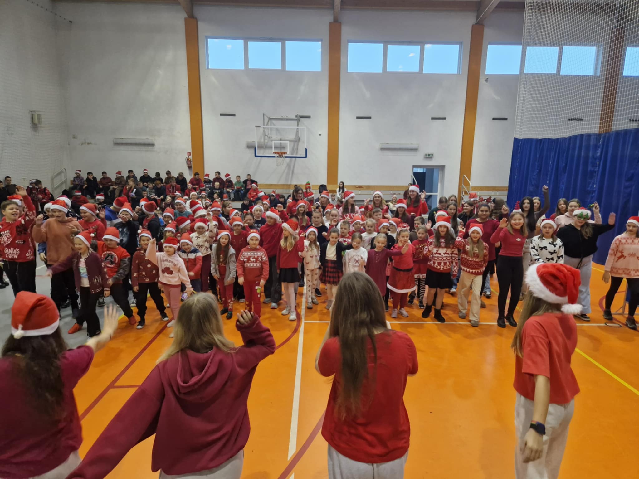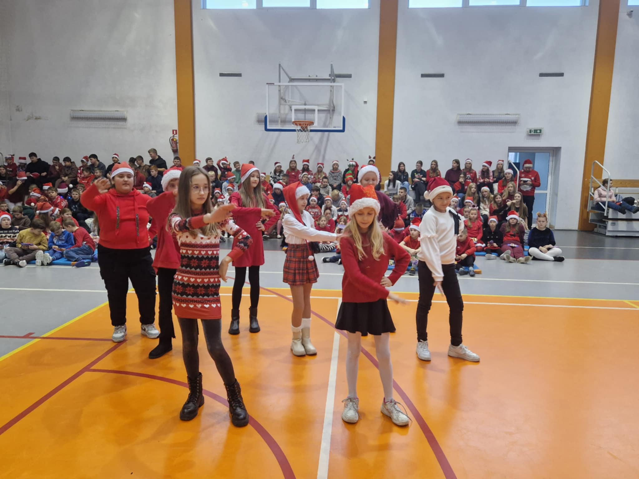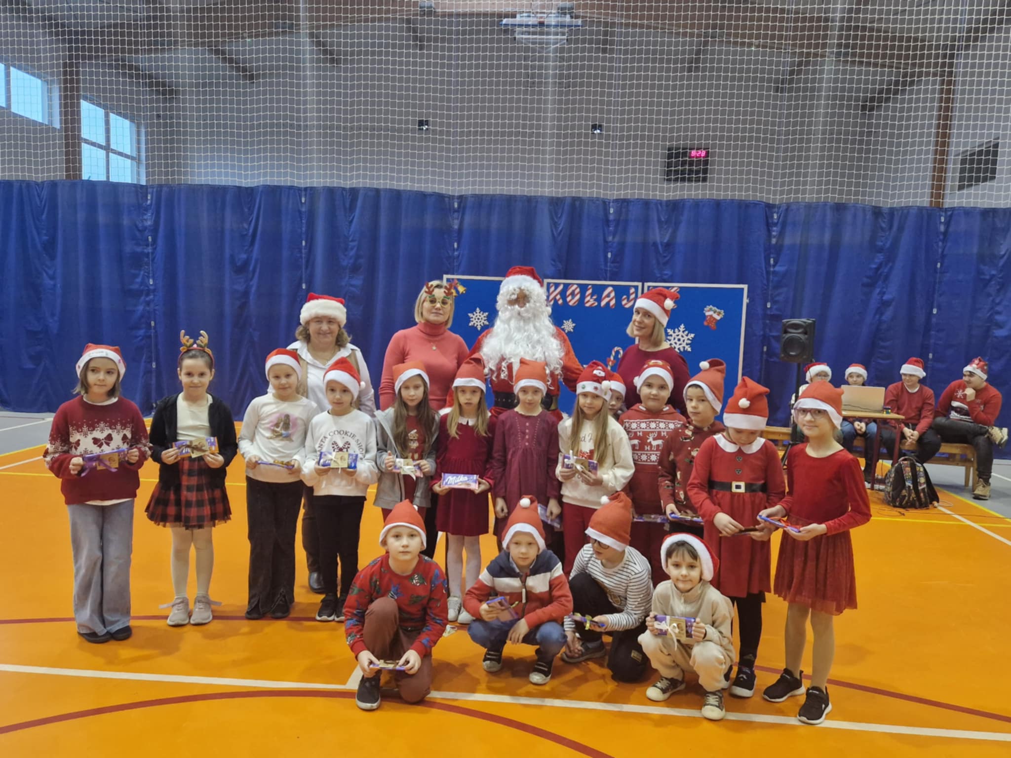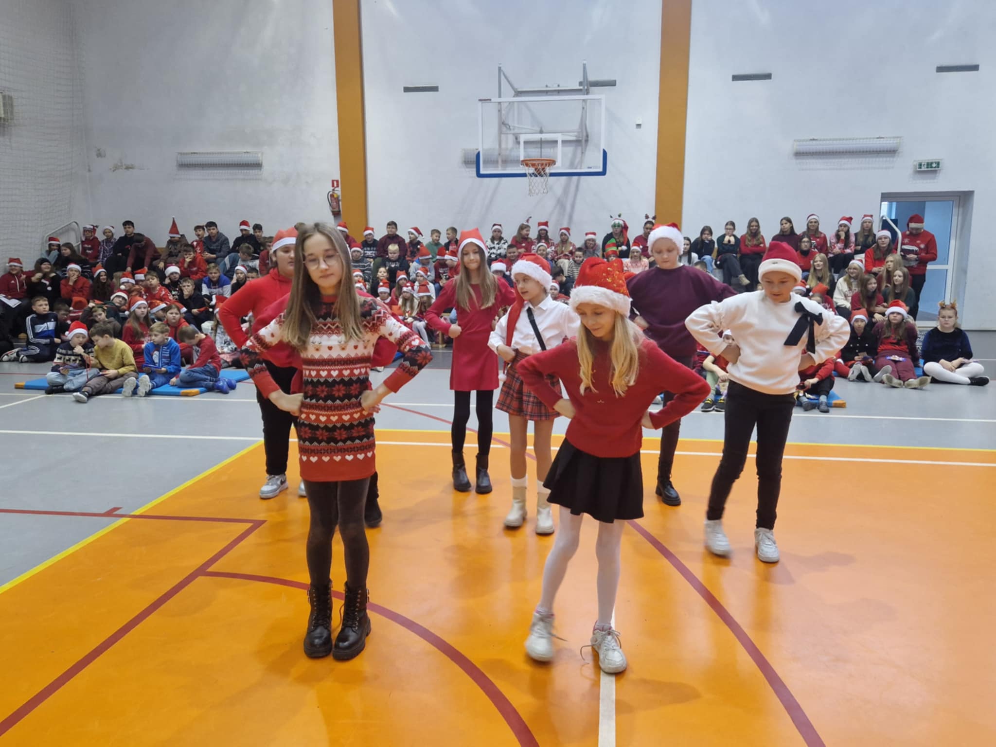 Właśnie dziś, 5 grudnia, odbyło się w naszej szkole radosne spotkanie ze Świętym Mikołajem. Uczniowie klas I-III oraz uczennice z klas IV i VI zaprezentowali przygotowane przez siebie tańce, wprowadzając wszystkich w świąteczny nastrój. Po występach każdy uczeń obdarowany został przez Mikołaja prezentem. Upominki ufundowane zostały przez Radę Rodziców. Spotkanie zakończyła wspólna, pełna energii, świąteczna zumba prowadzona przez uczennice klasy VI, w której wzięli udział wszyscy uczniowie. Atmosfera była wyjątkowo ciepła i radosna.