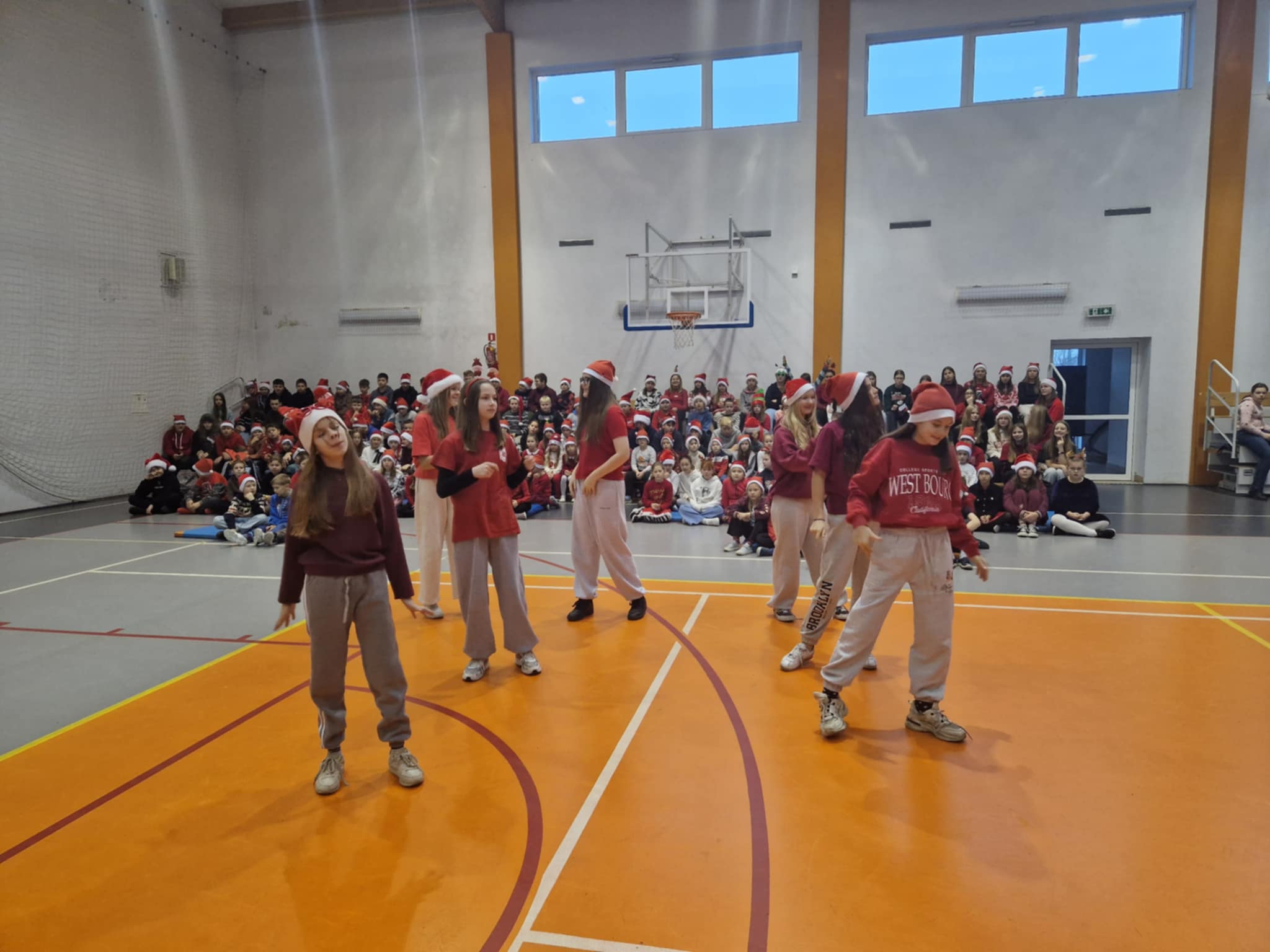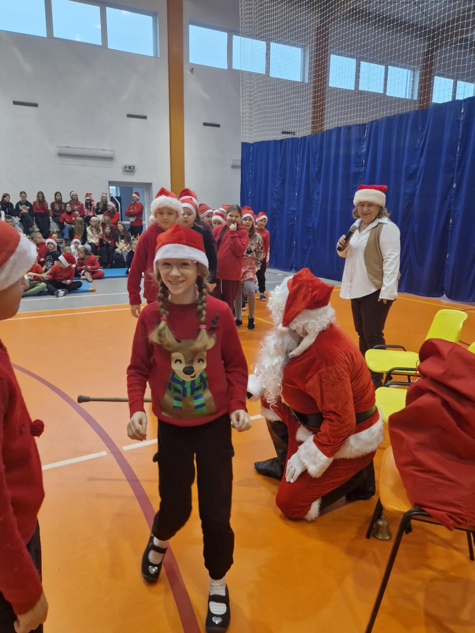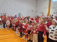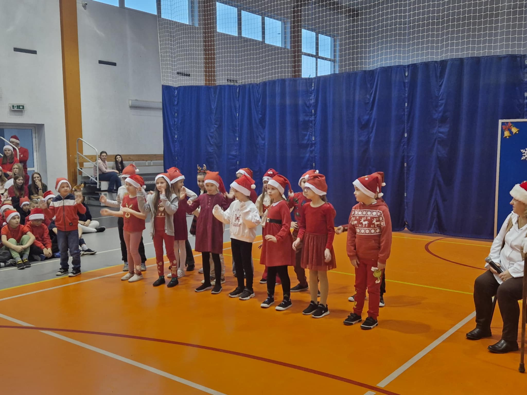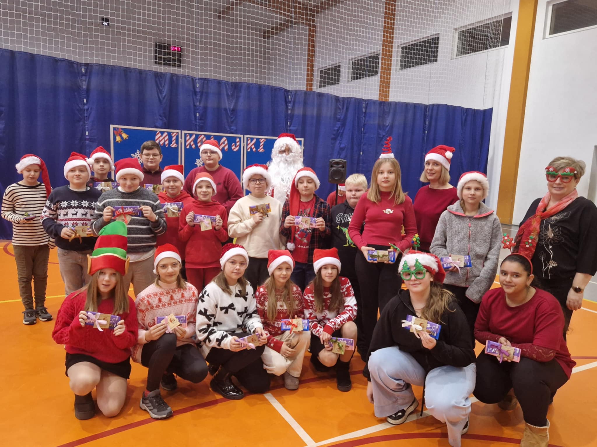 Właśnie dziś, 5 grudnia, odbyło się w naszej szkole radosne spotkanie ze Świętym Mikołajem. Uczniowie klas I-III oraz uczennice z klas IV i VI zaprezentowali przygotowane przez siebie tańce, wprowadzając wszystkich w świąteczny nastrój. Po występach każdy uczeń obdarowany został przez Mikołaja prezentem. Upominki ufundowane zostały przez Radę Rodziców. Spotkanie zakończyła wspólna, pełna energii, świąteczna zumba prowadzona przez uczennice klasy VI, w której wzięli udział wszyscy uczniowie. Atmosfera była wyjątkowo ciepła i radosna.