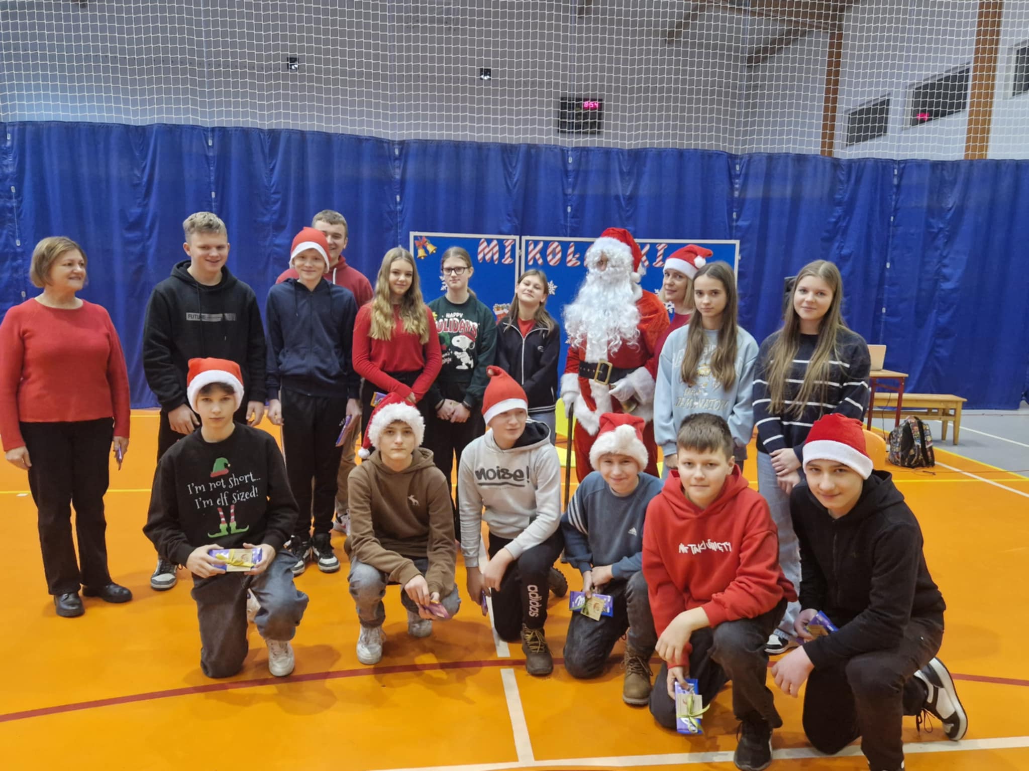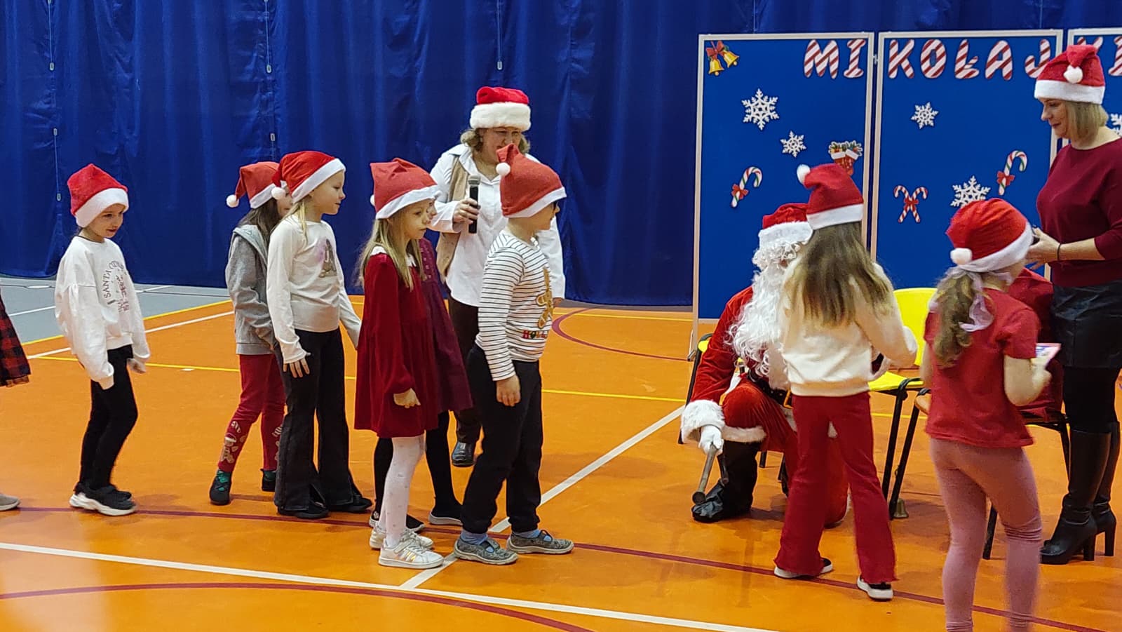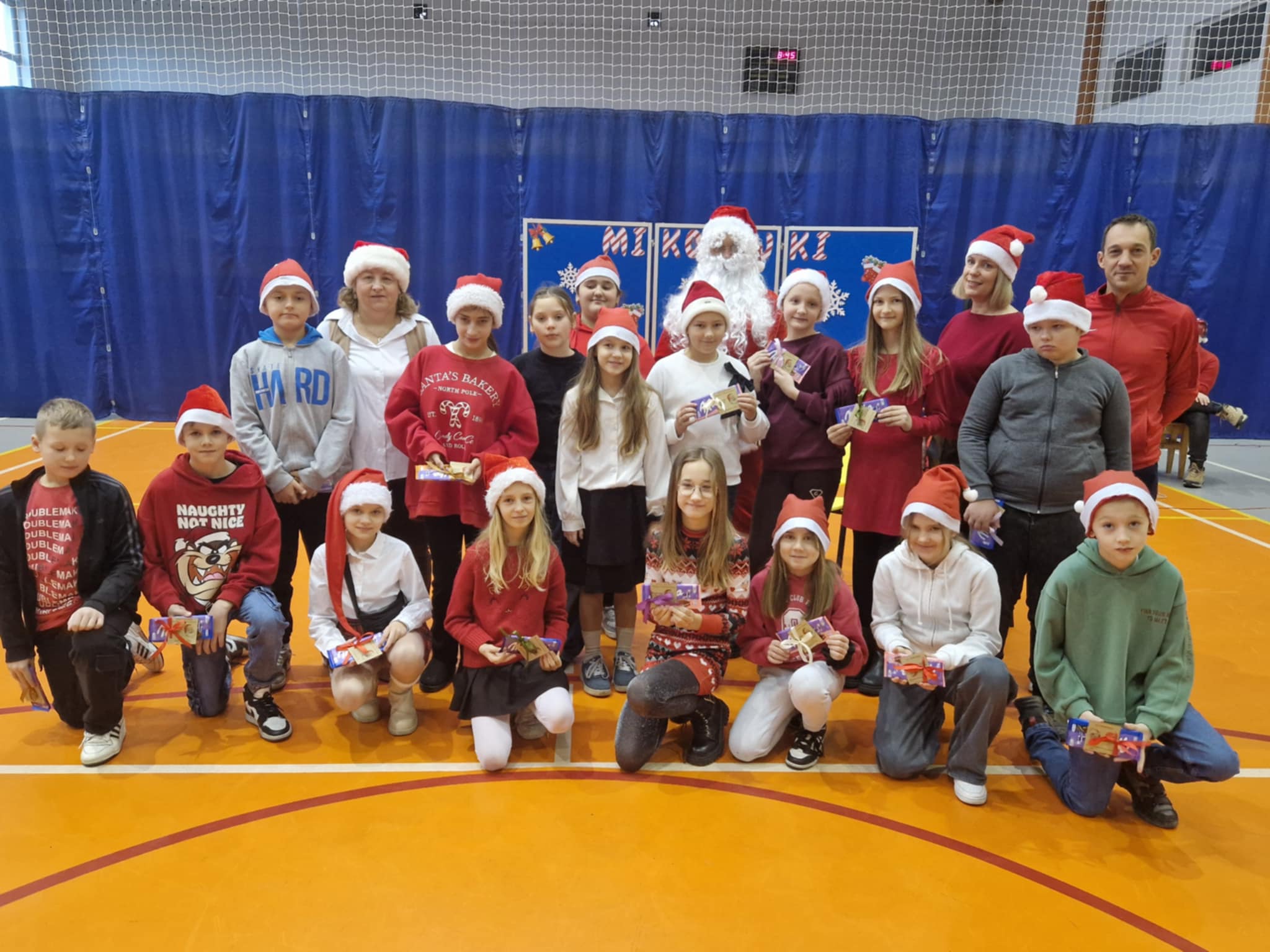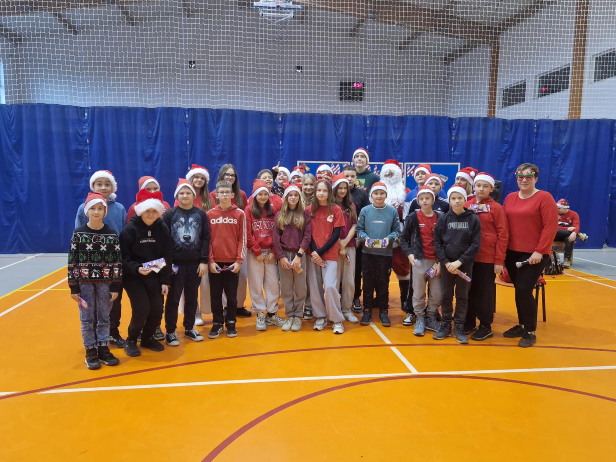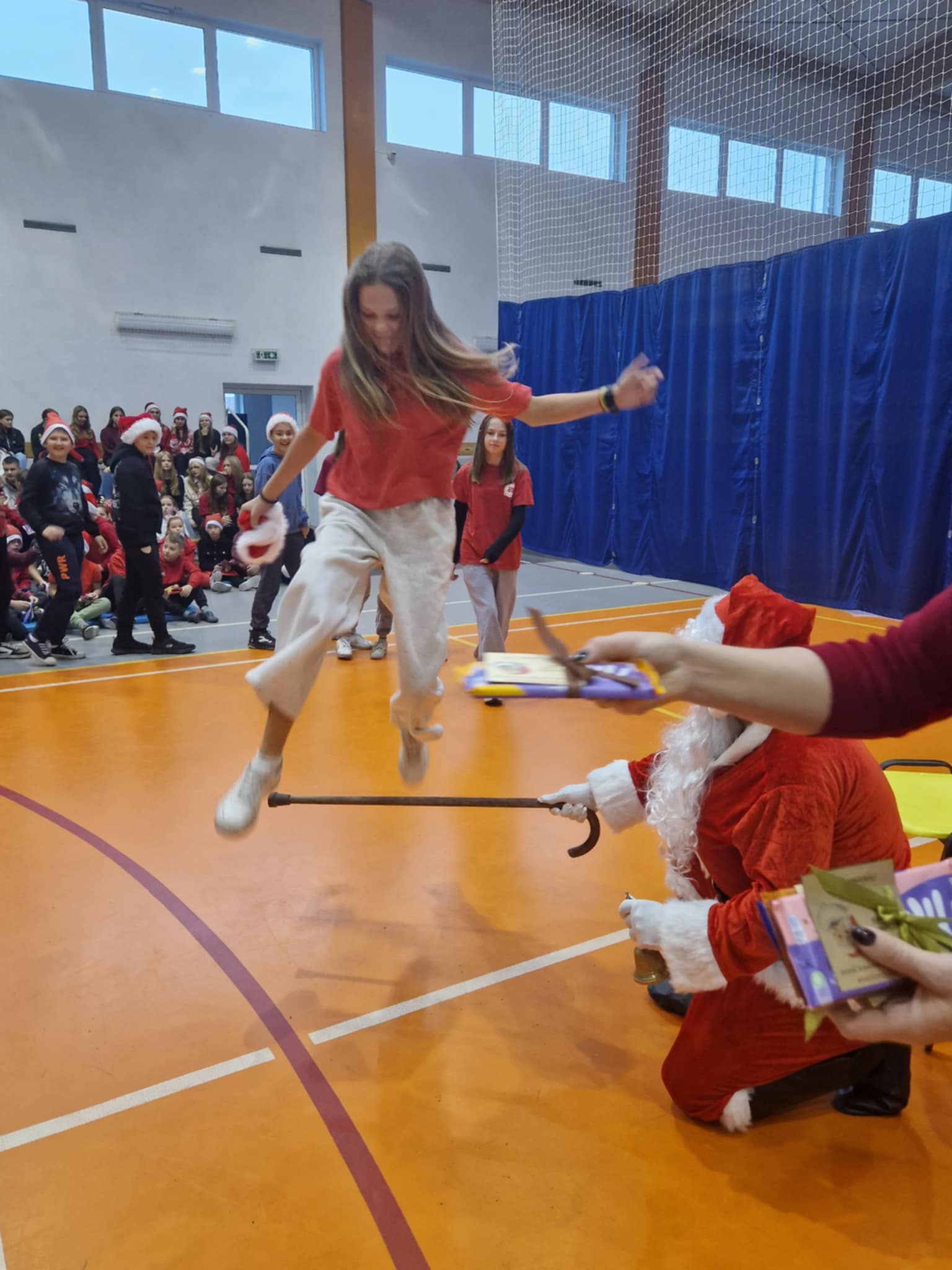 Właśnie dziś, 5 grudnia, odbyło się w naszej szkole radosne spotkanie ze Świętym Mikołajem. Uczniowie klas I-III oraz uczennice z klas IV i VI zaprezentowali przygotowane przez siebie tańce, wprowadzając wszystkich w świąteczny nastrój. Po występach każdy uczeń obdarowany został przez Mikołaja prezentem. Upominki ufundowane zostały przez Radę Rodziców. Spotkanie zakończyła wspólna, pełna energii, świąteczna zumba prowadzona przez uczennice klasy VI, w której wzięli udział wszyscy uczniowie. Atmosfera była wyjątkowo ciepła i radosna.