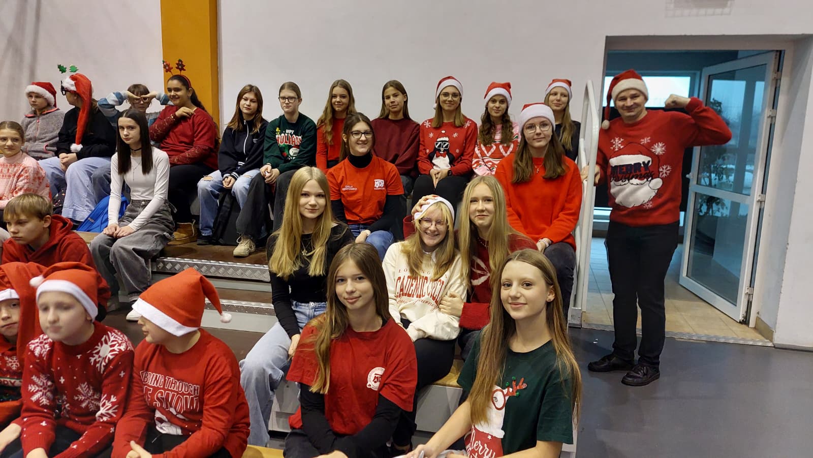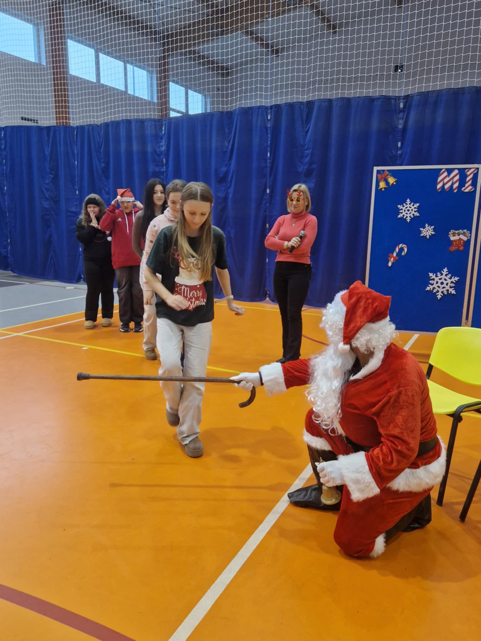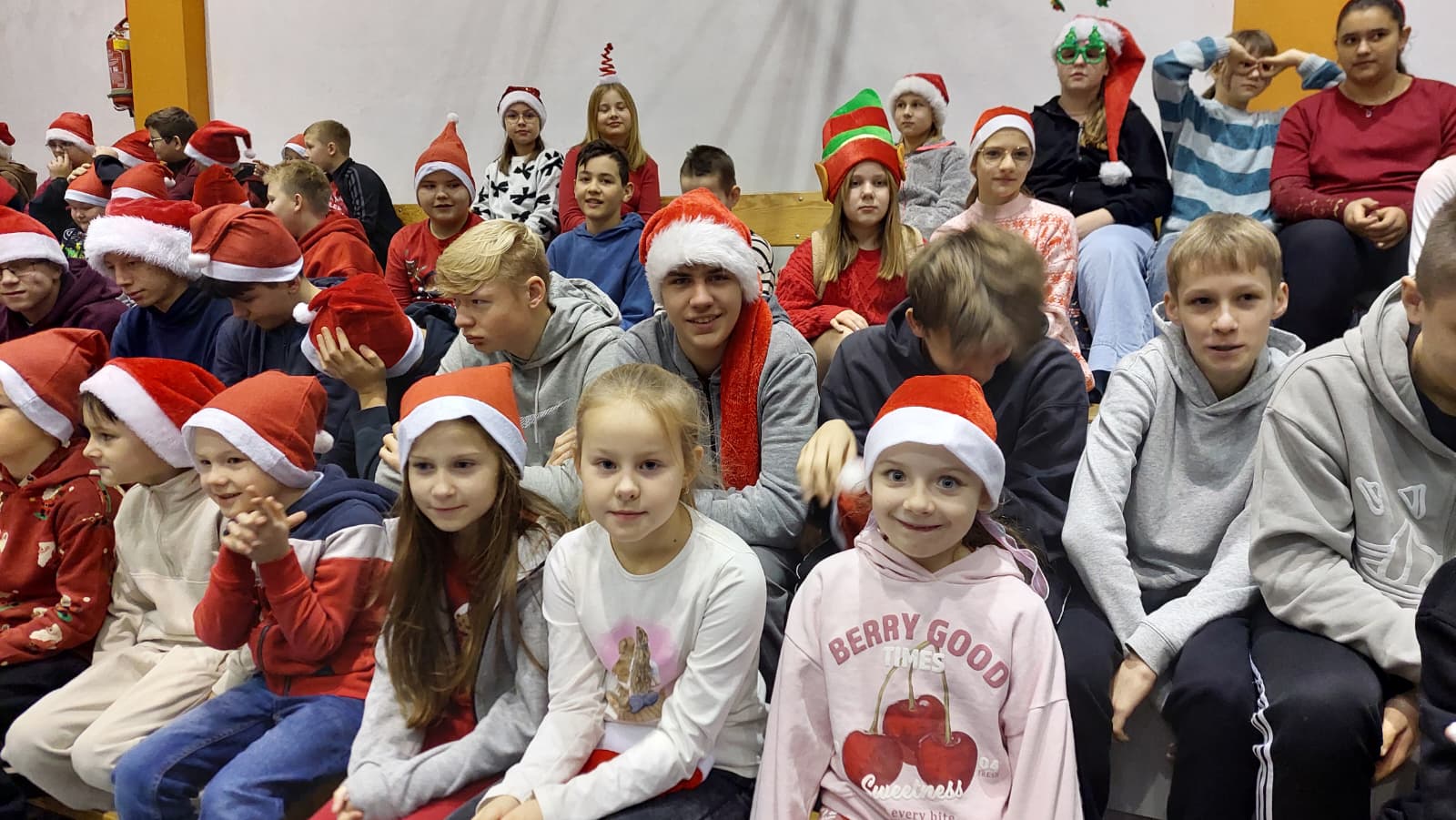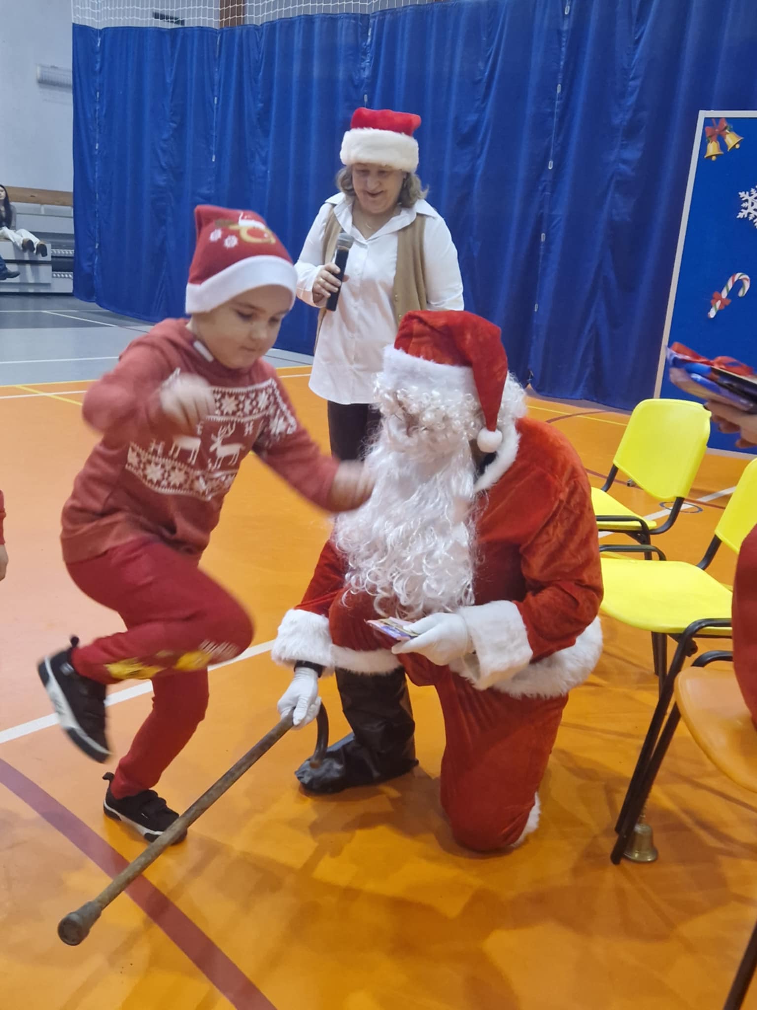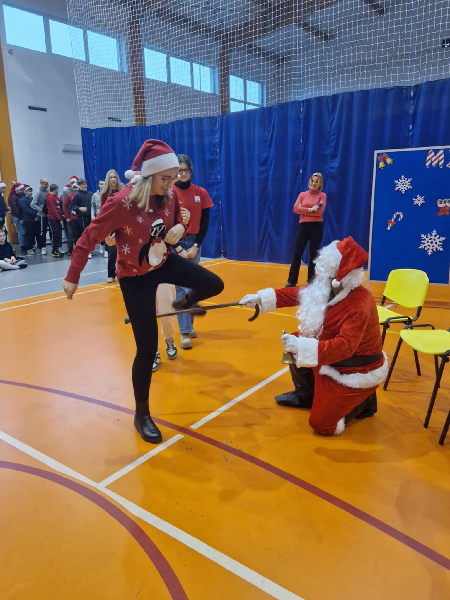 Właśnie dziś, 5 grudnia, odbyło się w naszej szkole radosne spotkanie ze Świętym Mikołajem. Uczniowie klas I-III oraz uczennice z klas IV i VI zaprezentowali przygotowane przez siebie tańce, wprowadzając wszystkich w świąteczny nastrój. Po występach każdy uczeń obdarowany został przez Mikołaja prezentem. Upominki ufundowane zostały przez Radę Rodziców. Spotkanie zakończyła wspólna, pełna energii, świąteczna zumba prowadzona przez uczennice klasy VI, w której wzięli udział wszyscy uczniowie. Atmosfera była wyjątkowo ciepła i radosna.