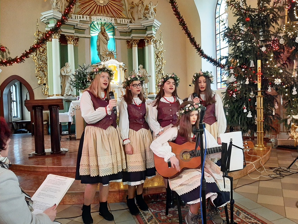 Śpiewanie pieśni bożonarodzeniowych to wspaniała tradycja, a wspólne kolędowanie jest jednym z bardzo ważnych sposobów głębszego przeżywania Świąt Narodzenia Jezusa. To właśnie w słowach kolęd ludzie poprzez wieki wyrażali wiarę oraz otwierali szeroko serca na przyjęcie Tajemnicy Bożego Narodzenia. W niedzielne popołudnie 19 stycznia 2020r. w naszym parafialnym kościele Koncert kolęd i pastorałek odbył się już po raz XVI. Widzowie usłyszeli znane i lubiane kolędy oraz pieśni bożonarodzeniowe w wykonaniu naszych uczniów, dziecięcej grupy obrzędowej "Szakiety” oraz zaproszonych gości. W tym roku gościnnie wystąpili: Chór parafialny oraz Koło Śpiewu im. Bolesława Dembińskiego z Miejskiej Górki pod dyrekcją pani Jowity Augustyniak. Występujący dali swoim słuchaczom możliwość uczestniczenia w niesamowicie klimatycznym wydarzeniu. Śpiewanie kolęd stało się tradycją naszej szkoły, zatem już dzisiaj zapraszamy za rok!