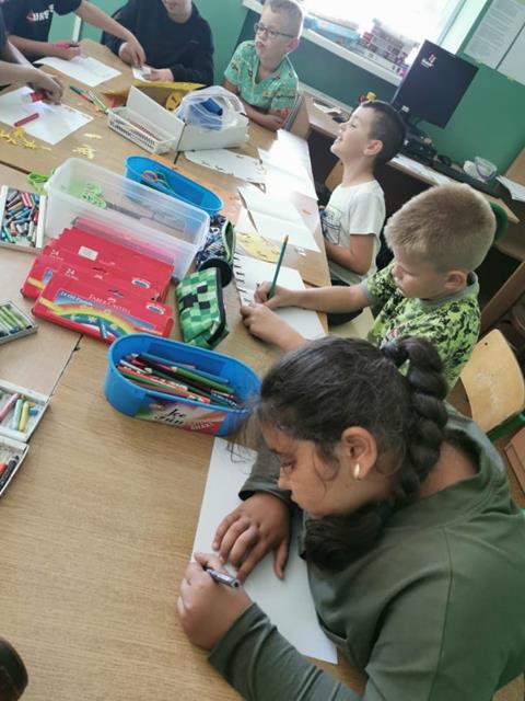 Nasi uczniowie podczas zajęć świetlicowych wykonali kartki urodzinowe dla małej Melanii, której marzeniem jest dostać ogromną liczę kartek na swoje 4 urodzinki.