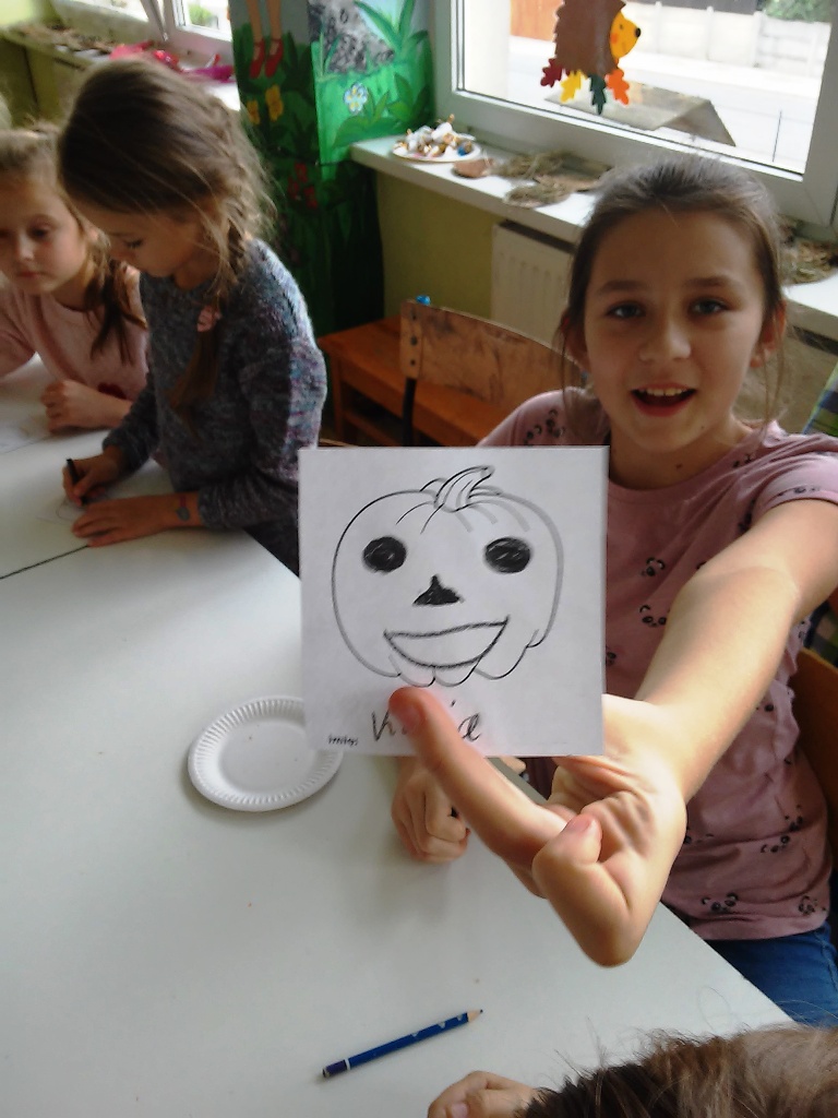 Tego dnia wszystkie dynie małe i duże miały swoje święto. Zabawę rozpoczęliśmy od przeczytania wiersza Marii Kownackiej „Dynia” . Następnie dzieci wzięły udział w zabawie integracyjnej „wędrująca dynia” oraz w zabawie kreatywnej „wyprawa do Dyniolandii”. Niespodzianką były zdrowe ciasteczka dyniowe w kształcie dyni, które dzieci dekorowały kolorowym lukrem i zjadały. Zabawę chcieliśmy zakończyć zrobieniem lampionów z dyni, niestety dynia miniaturka okazała się zbyt twarda, co uniemożliwiło nam wycięcie w niej otworów. Mimo problemów z cięciem dyni, dzień dyni w świetlicy uważamy za udany.