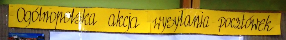 Świetlica szkolna włączyła się w ogólnopolską akcję wysyłania pocztówek wysyłając do szkolnych świetlic w całej Polsce około 40 sztuk. Kartki z życzeniami zostały wypisane przez dzieci w trakcie trwania zajęć w szkolnej świetlicy. Dzieciom bardzo spodobała się akcja, chętnie szukają na mapie Polski miejsc , z których kartki zostały wysłane. Do tej pory otrzymaliśmy kartki z: Olsztynka, Łebna, Wrocławia, Szczecina, Kędzierzyna – Koźle i Warszawy. Czekamy na resztę i dalej wysyłamy pocztówki.