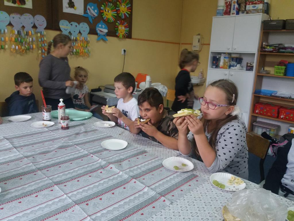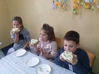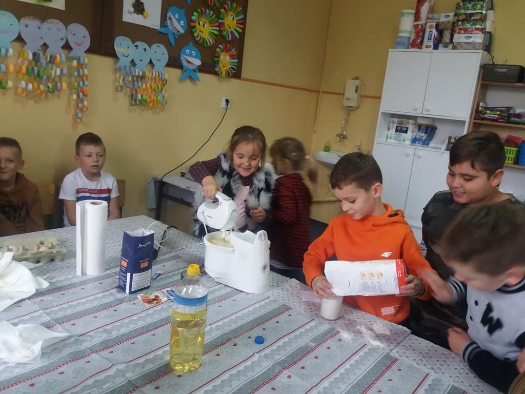 8 października podczas zajęć kulinarnych dzieci przygotowywały smaczne i kolorowe gofry. Najpierw mali kucharze rozwiązywali zagadki i poznawali składniki ciasta na gofry. Później wspólne przygotowanie ciasta, pieczenia i w końcu objadanie się pysznymi goframi z nutellą, śmietaną, dżemem i owocami. Dzieci uczyły się zasad bezpieczeństwa podczas przygotowania posiłków. Po zajęciach wszyscy z uśmiechem na twarzy pytali, kiedy znowu coś pysznego przygotujemy.